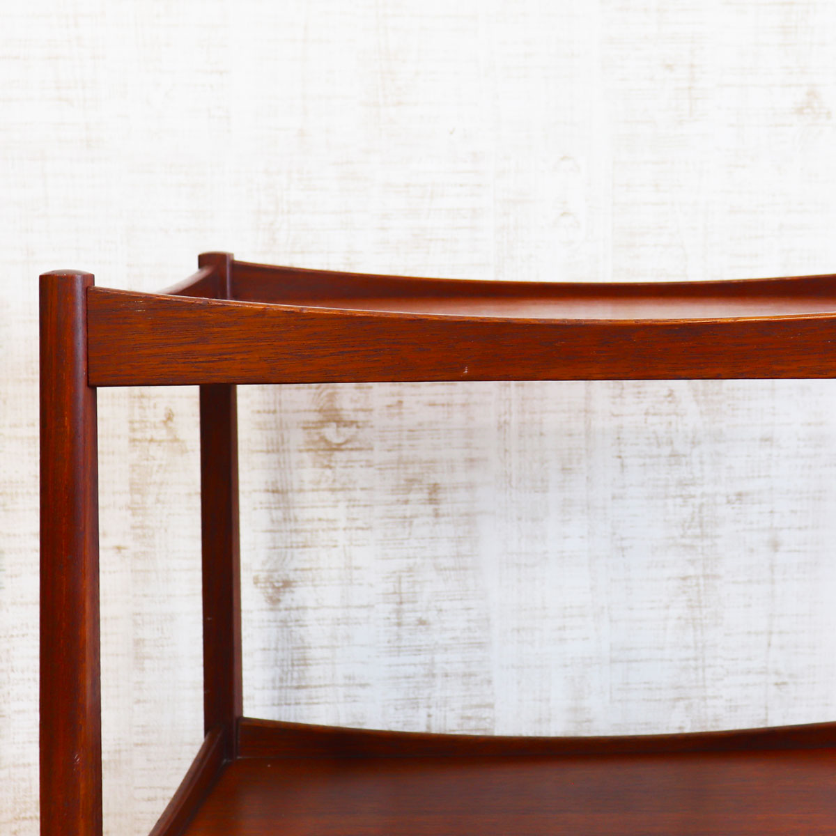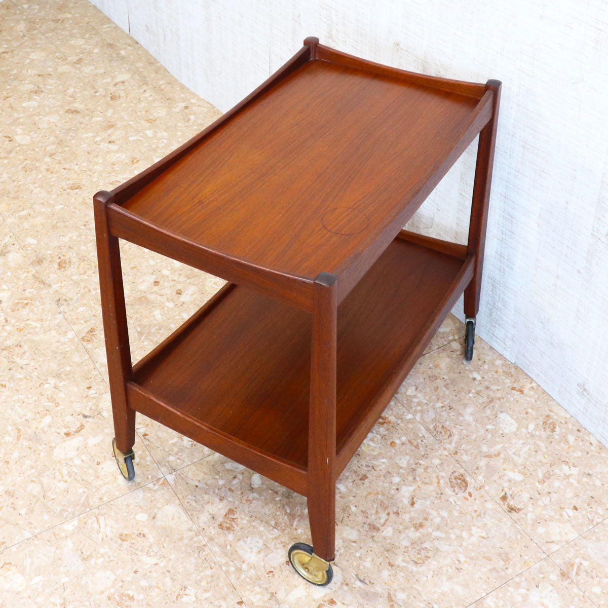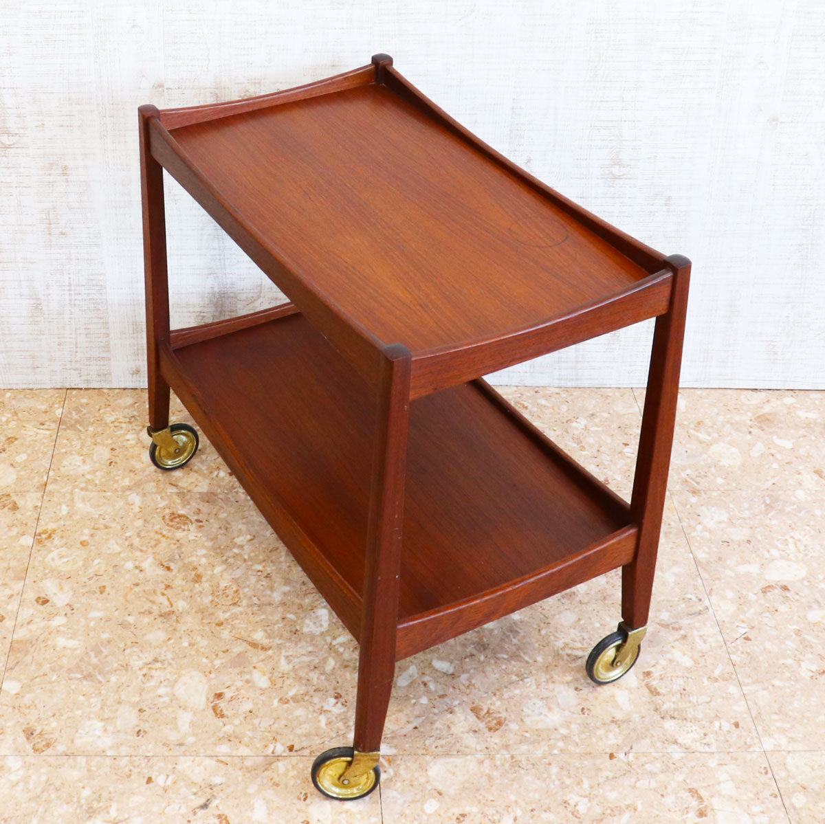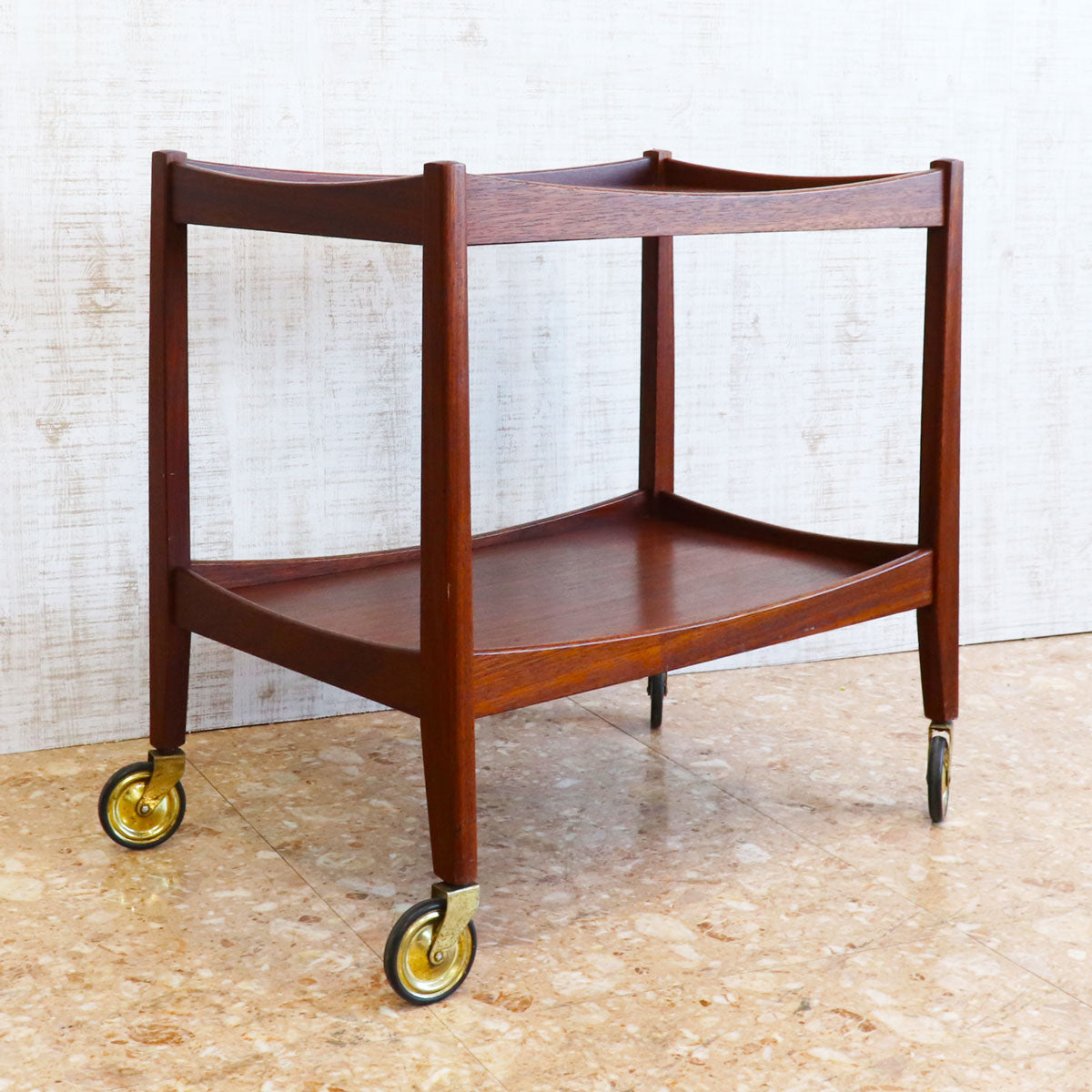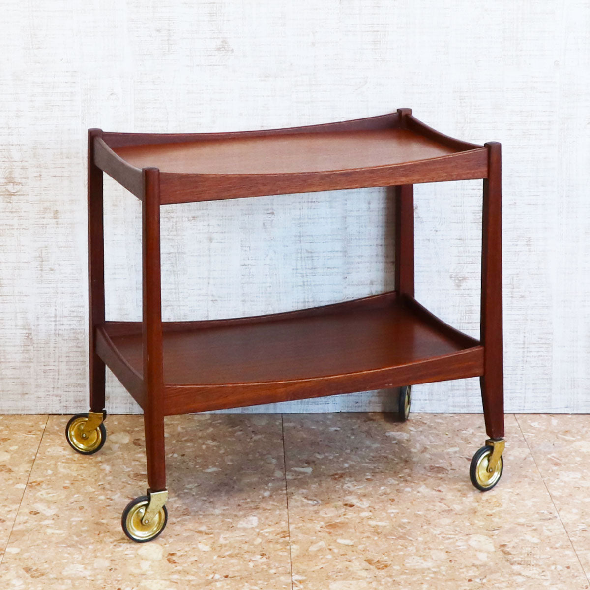 上質なチーク材を使用した、ヴィンテージスタイルのドリンクカート。北欧デザインを感じさせるミニマルなフォルムと、曲線を活かした天板の縁が美しく、実用性とデザイン性を兼ね備えています。上下2段の棚は、ドリンクやグラスのサーブに最適。