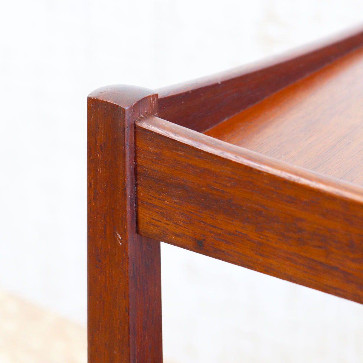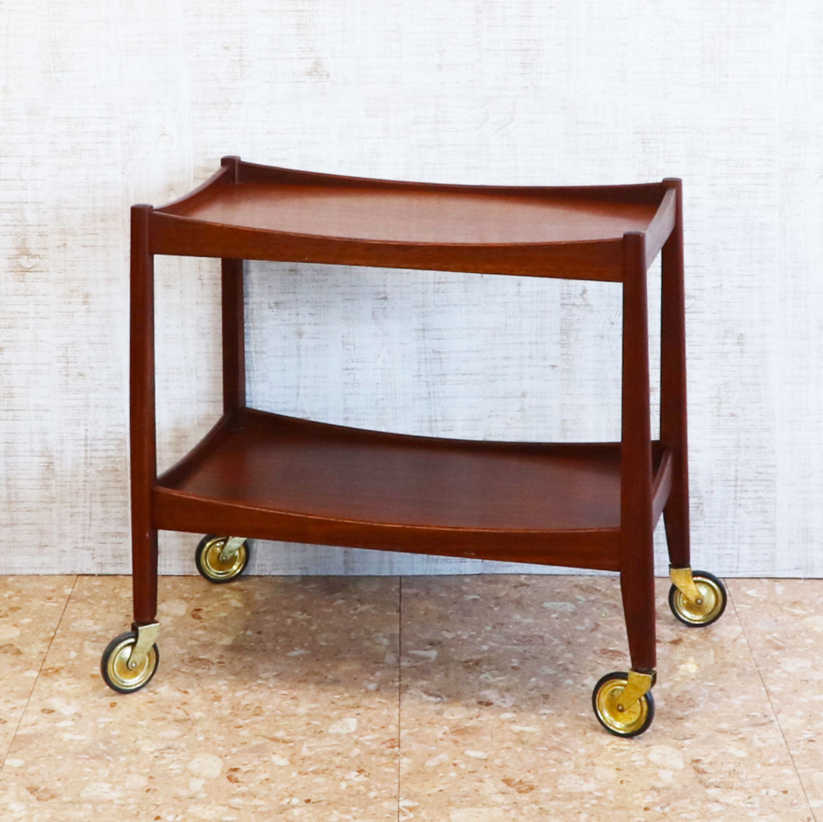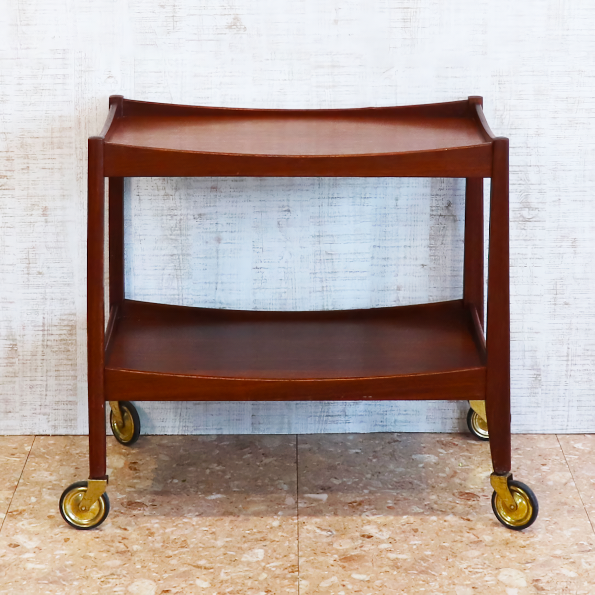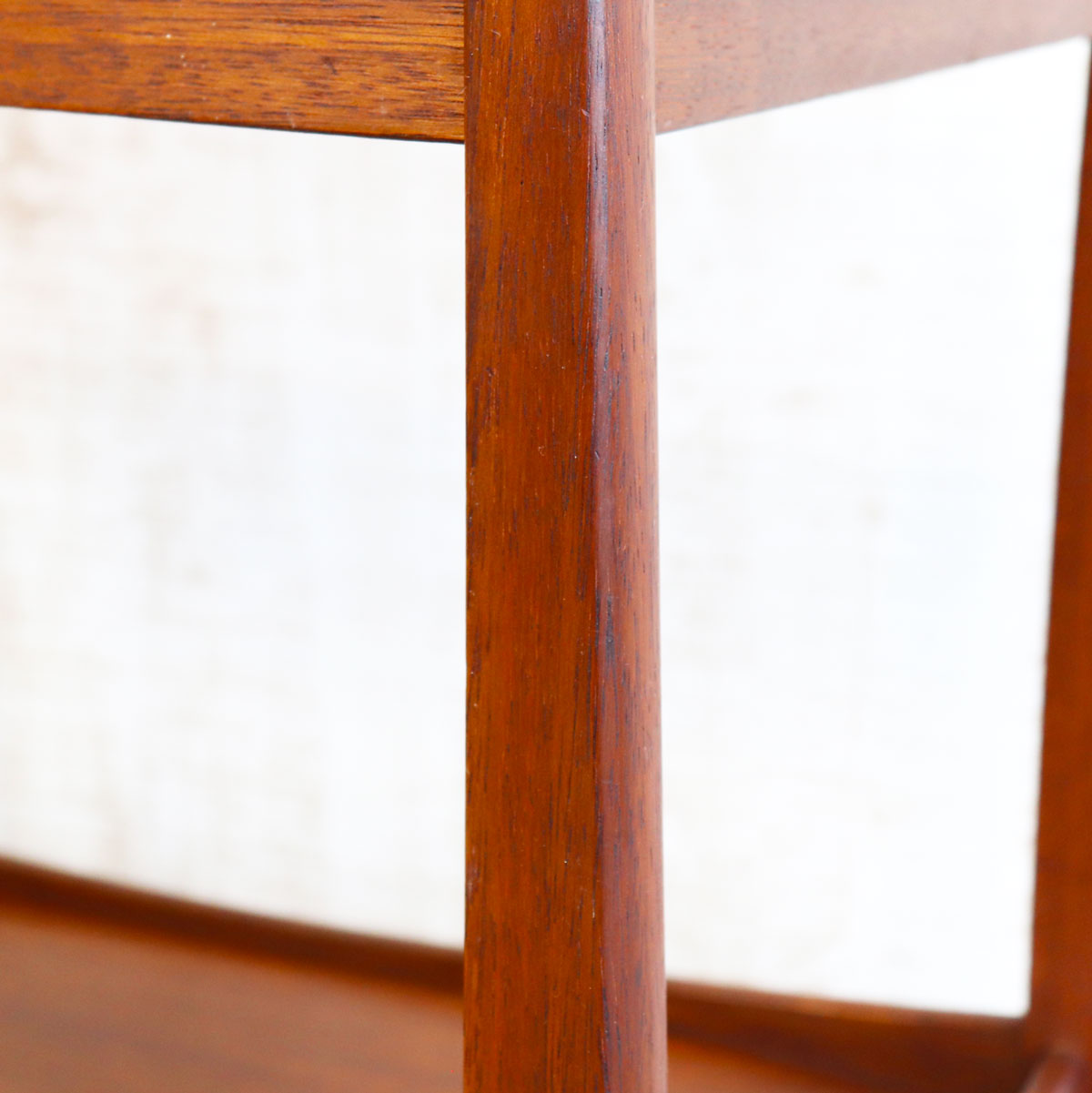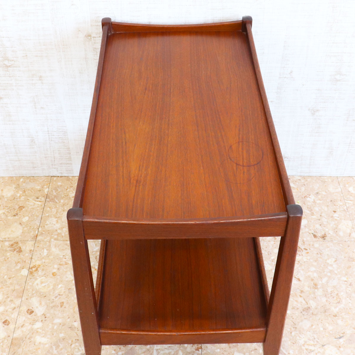 上質なチーク材を使用した、ヴィンテージスタイルのドリンクカート。北欧デザインを感じさせるミニマルなフォルムと、曲線を活かした天板の縁が美しく、実用性とデザイン性を兼ね備えています。上下2段の棚は、ドリンクやグラスのサーブに最適。