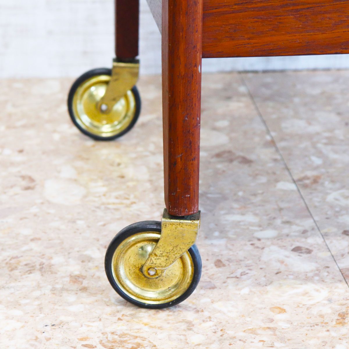 真鍮風のキャスターがスムーズな移動をサポートし、キッチンやリビングでの使用にも便利です。インテリアのアクセントとしても映える、時代を超えた逸品です。