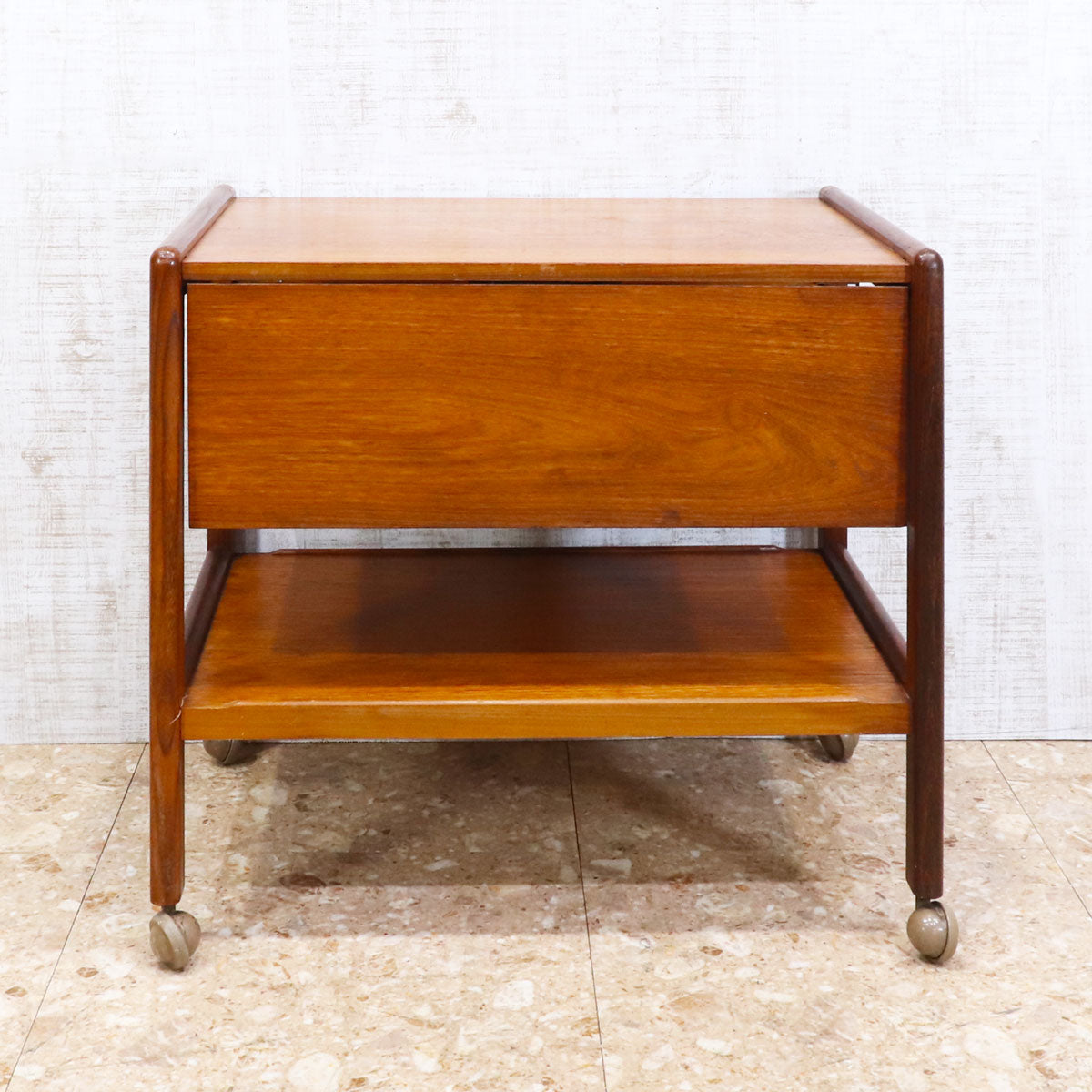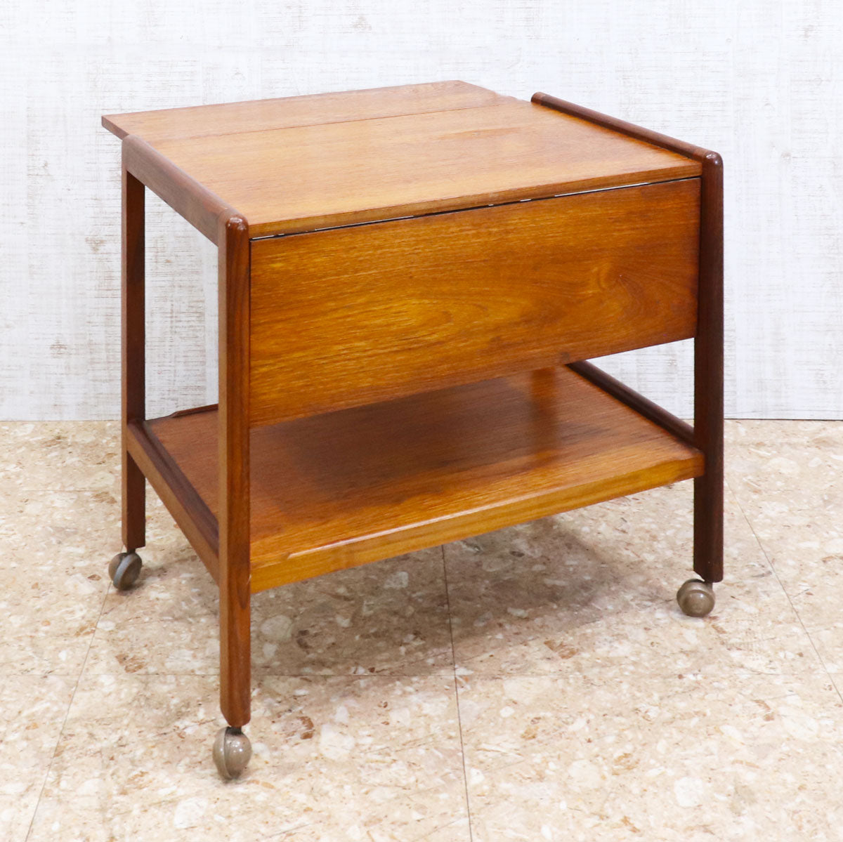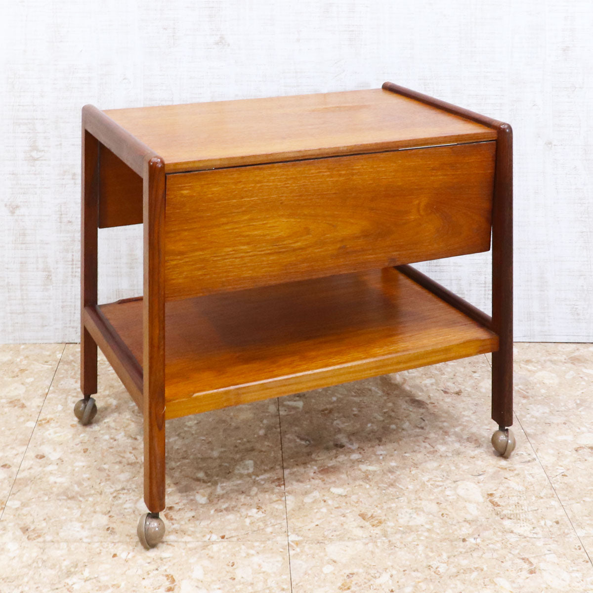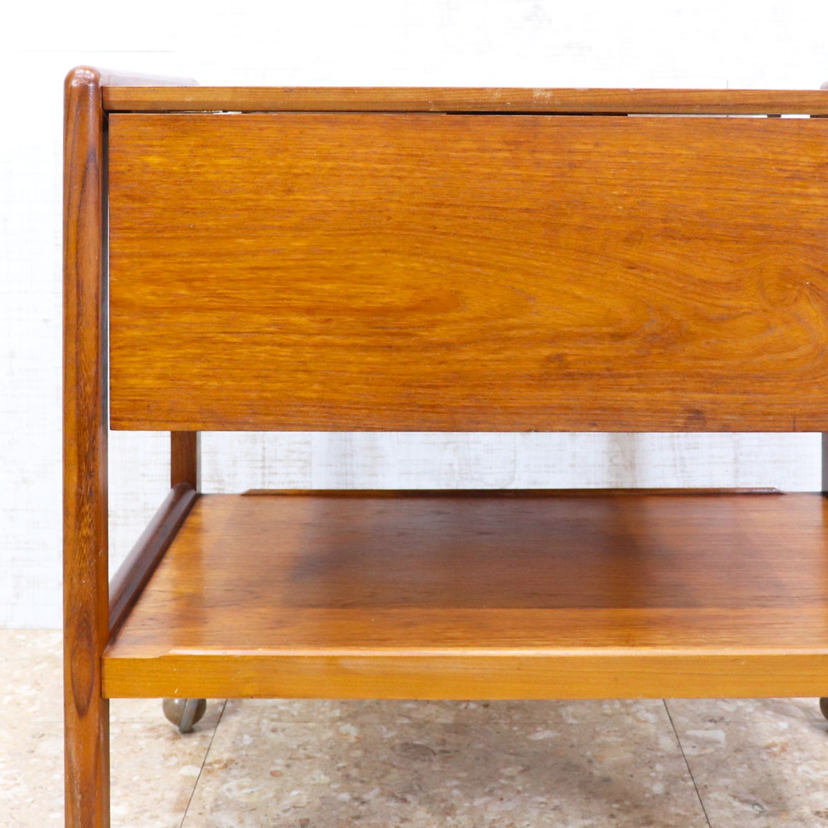 チーク材を使用したヴィンテージのドリンクトロリー。シンプルで無駄のないデザインが美しい、ミッドセンチュリースタイルの一台です。