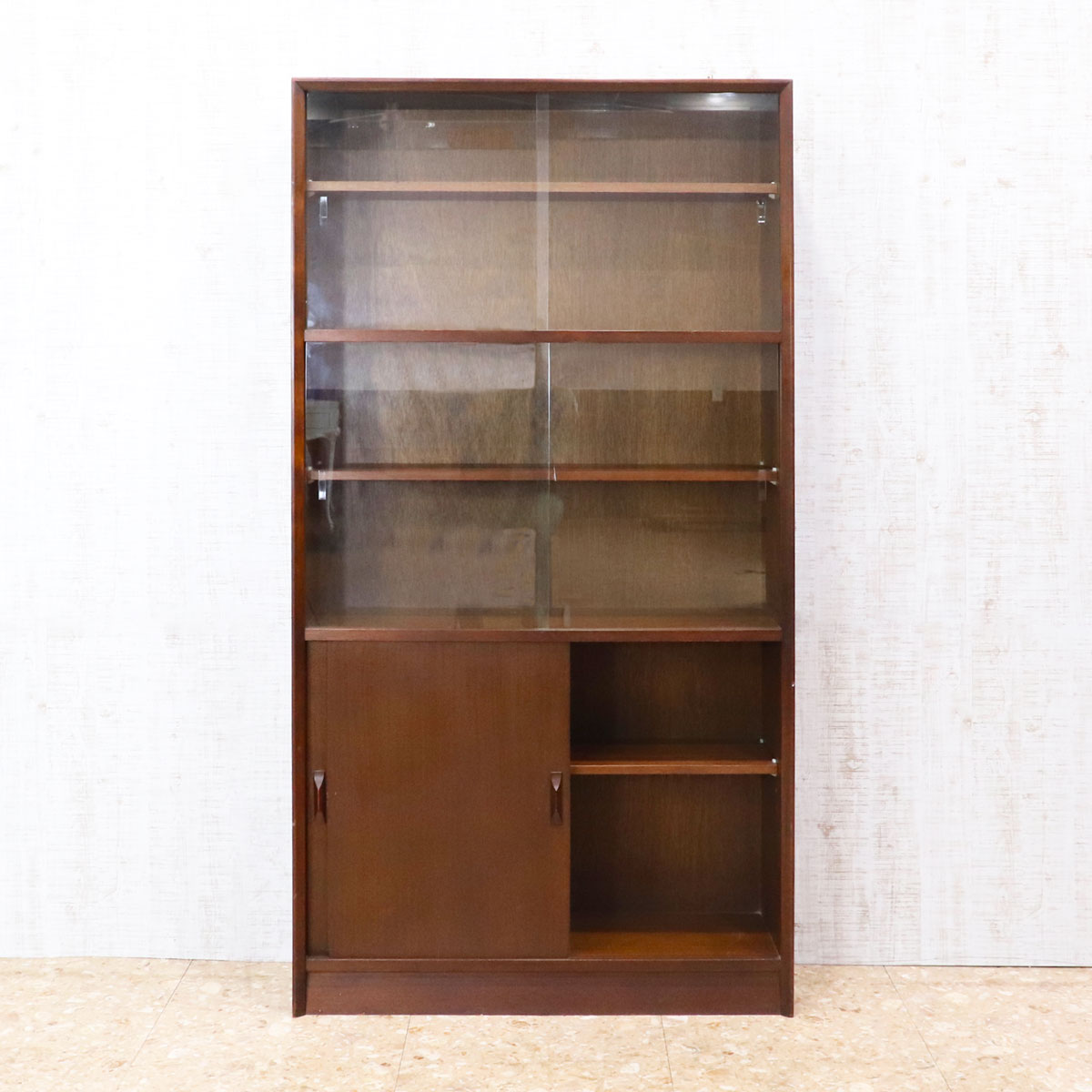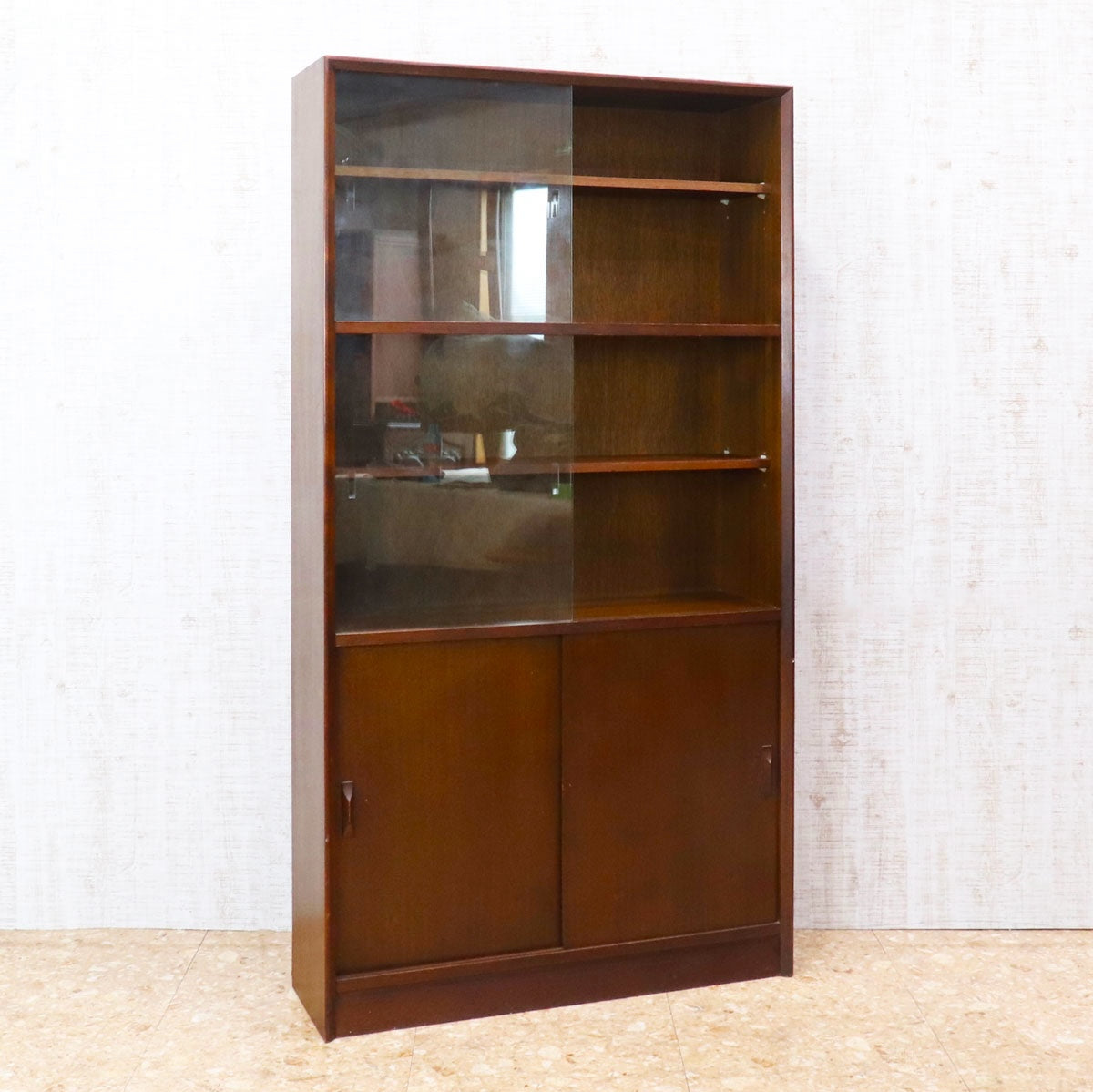 イギリスの名門家具メーカー Herbert E. Gibbs(ハーバート・E・ギブス) によるヴィンテージ ハイキャビネット。1960~70年代頃に製造された一台で、英国ミッドセンチュリー家具らしい端正でモダンなデザインが魅力。上段はガラス扉付きのシェルフになっており、食器やコレクション、書籍などを美しくディスプレイできます。下段には木製扉の収納スペースを備え、日常使いのアイテムをすっきりと収めることが可能です。