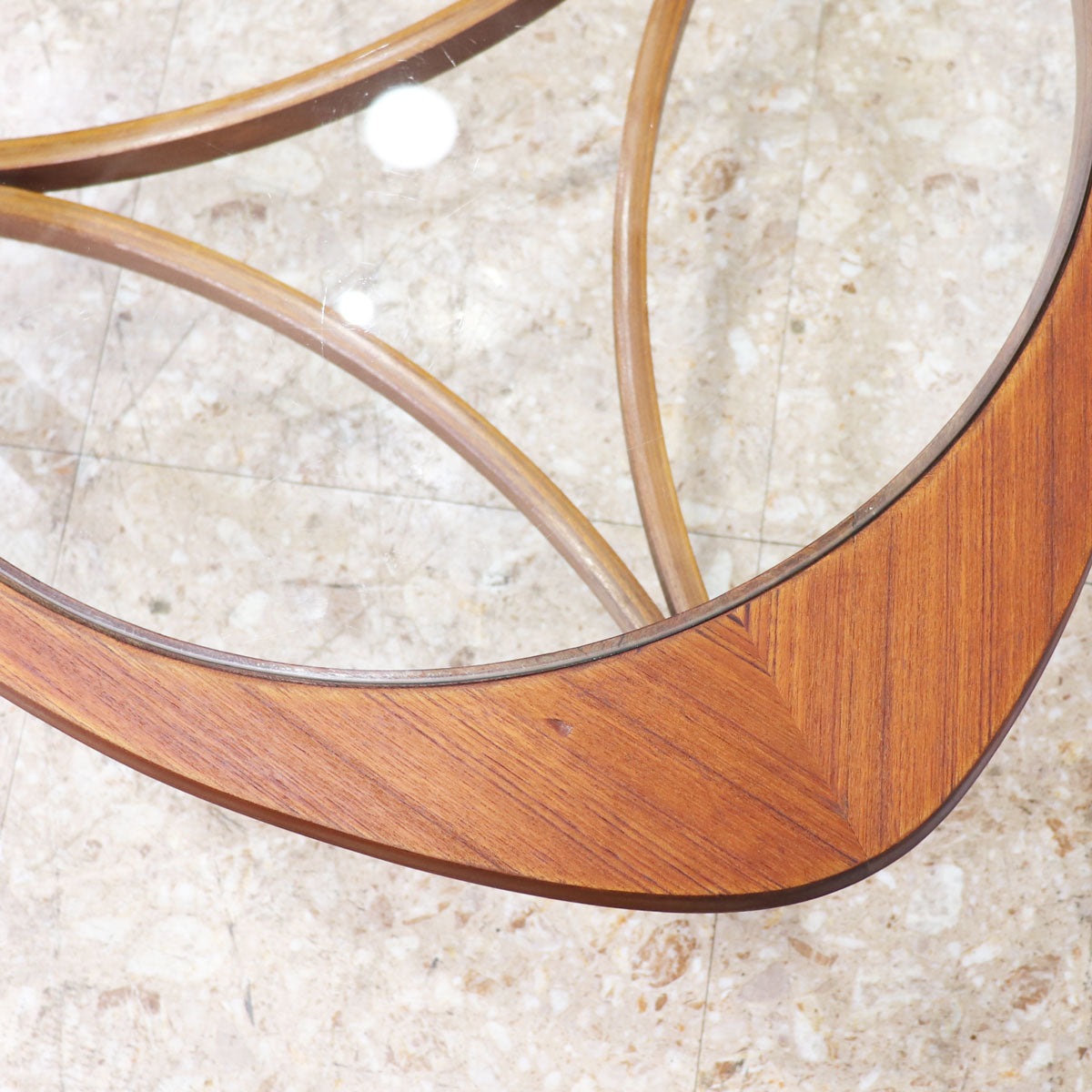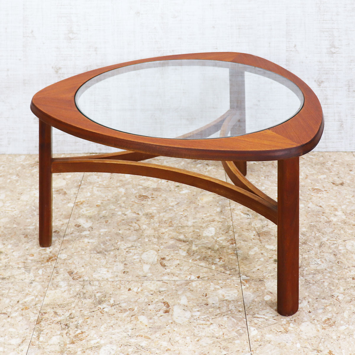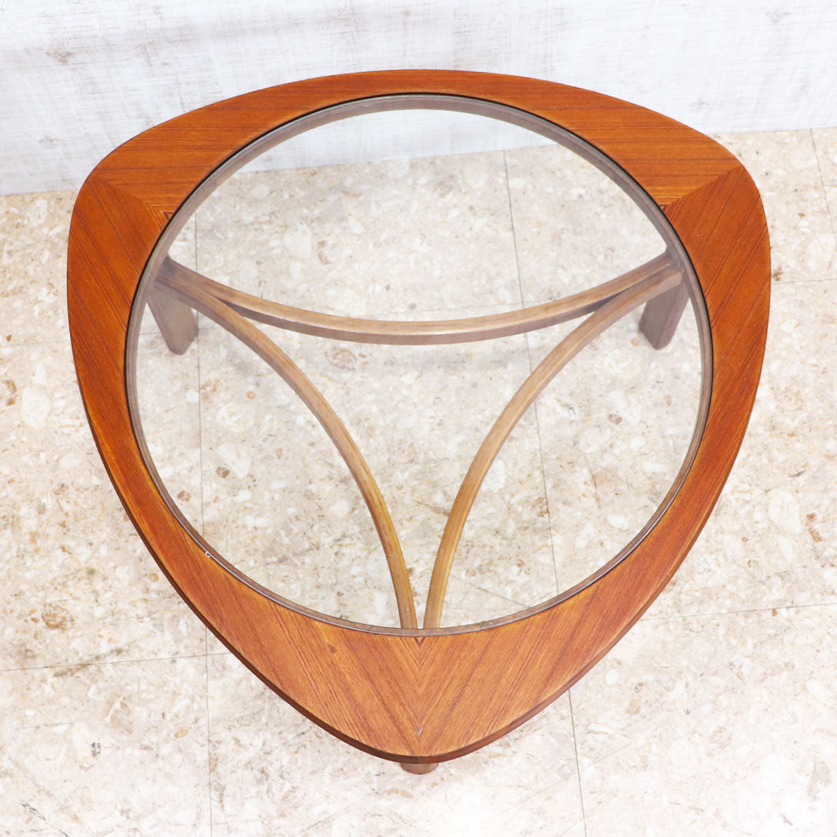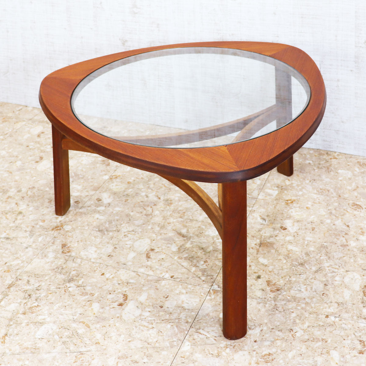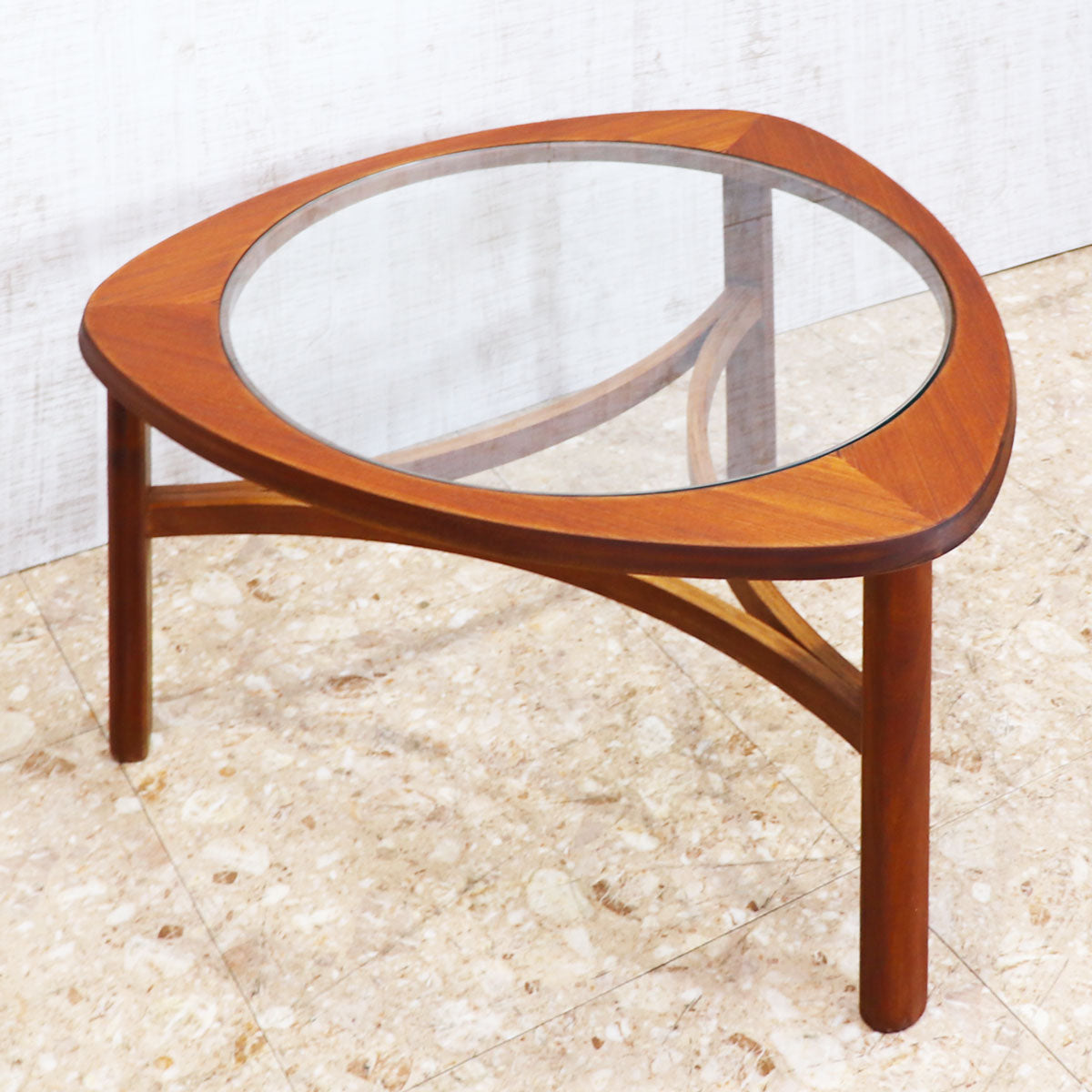 イギリスの名門ブランド NATHAN(ネイサン) によるトライアングル型ガラストップ・コーヒーテーブル。