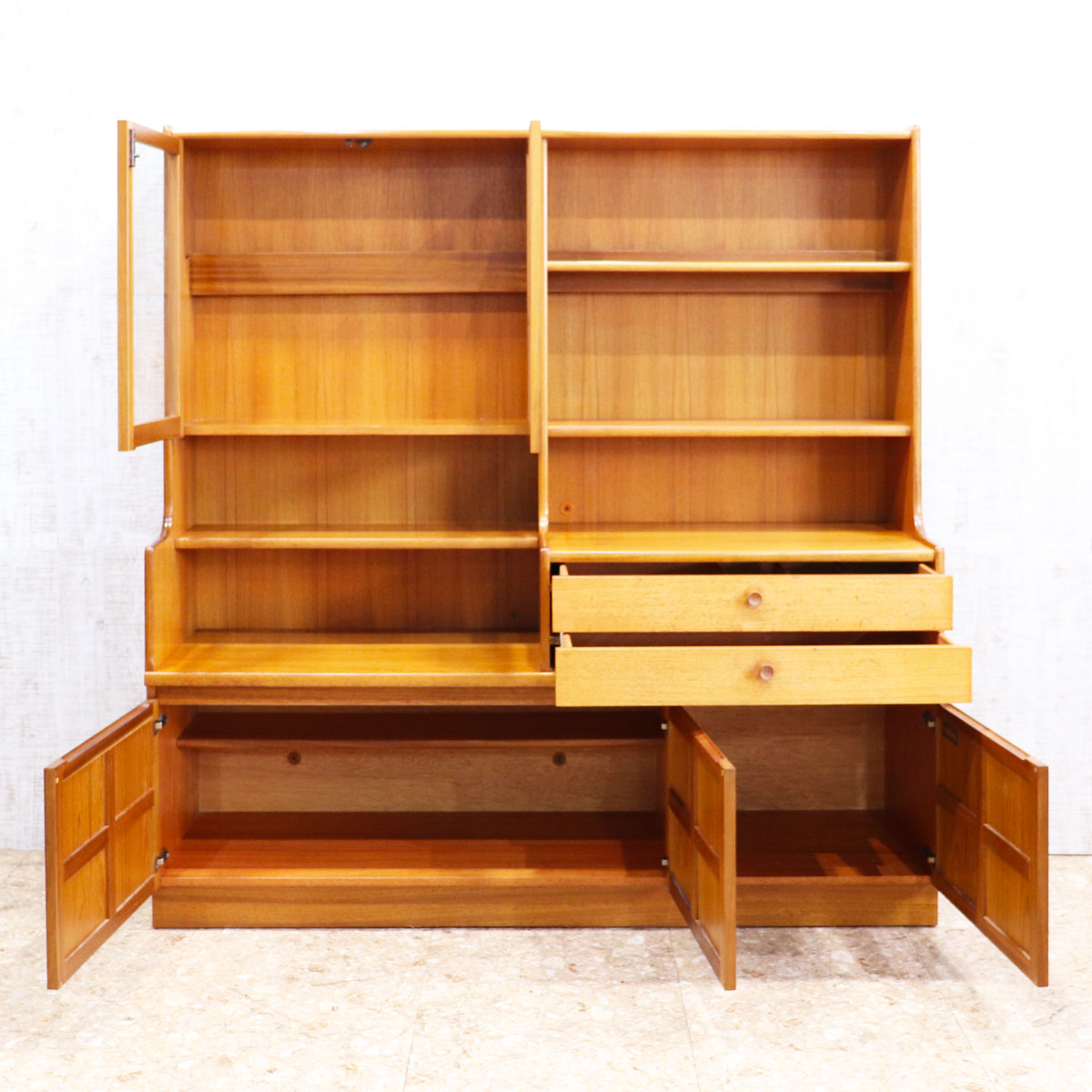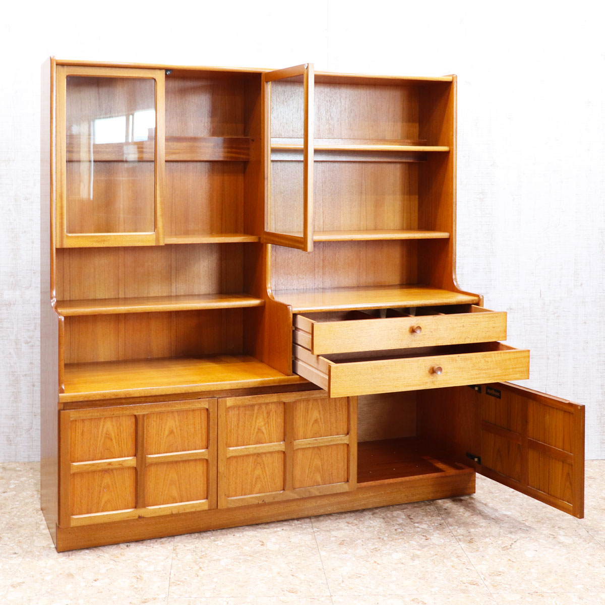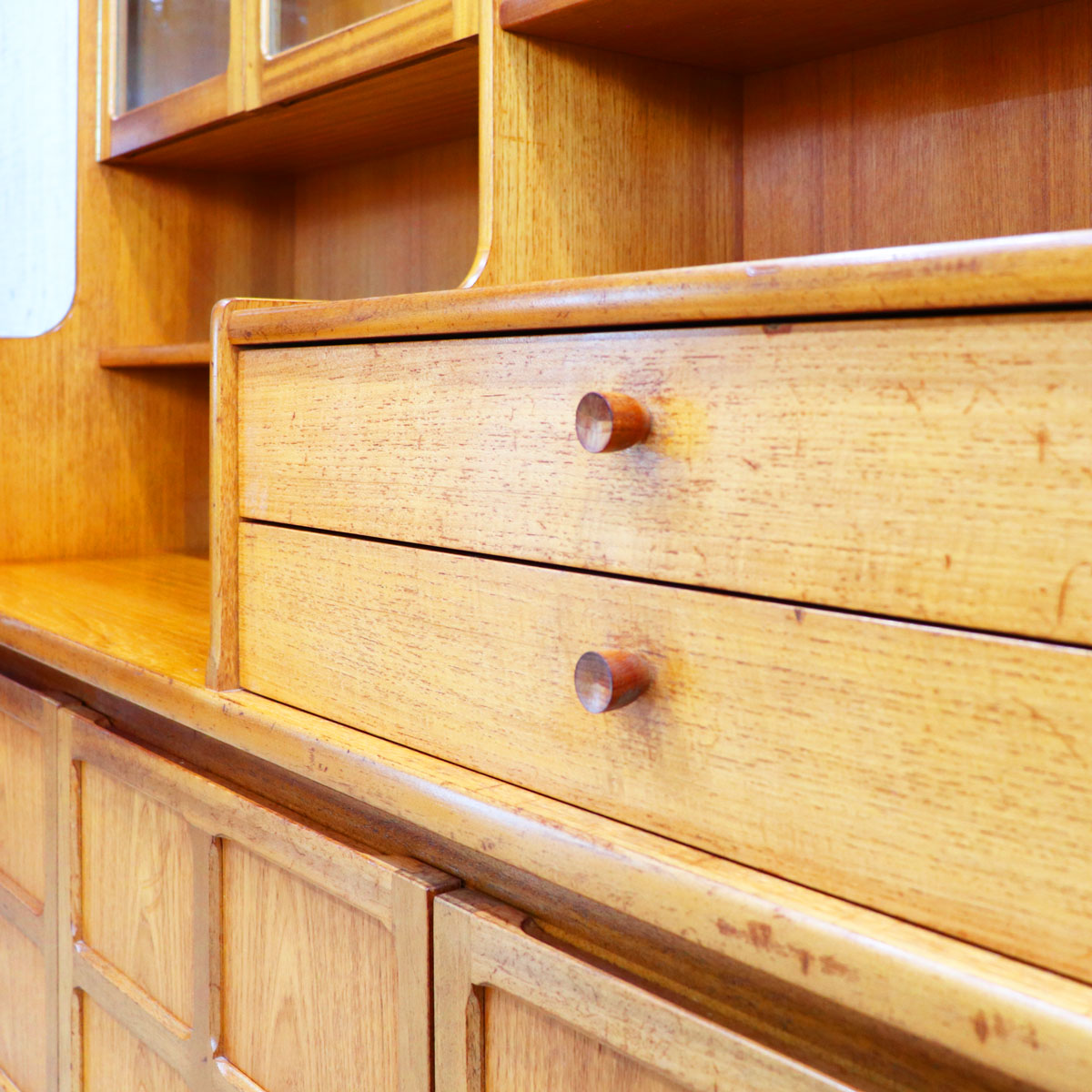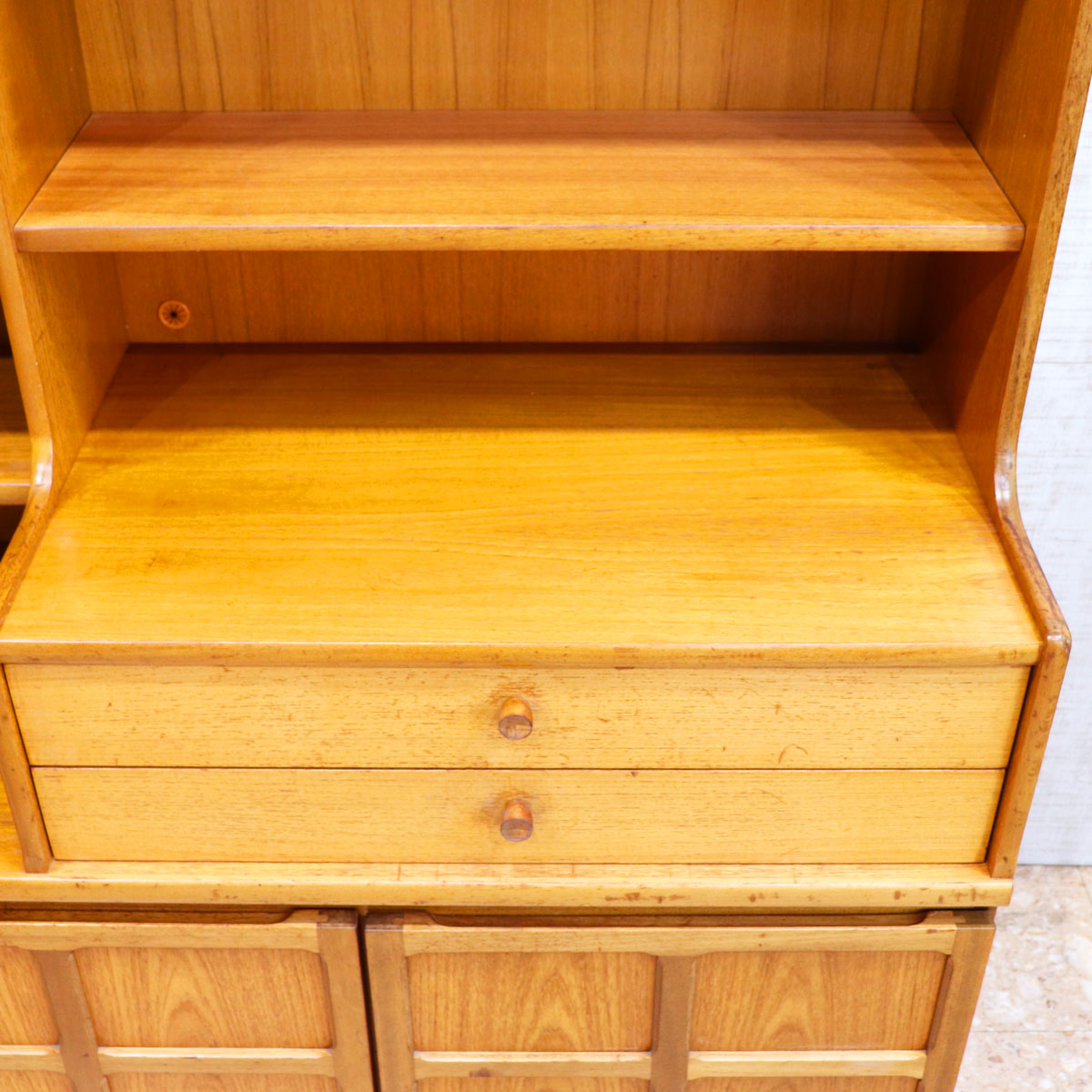 イギリスを代表するブランド NATHAN(ネイサン) によるヴィンテージ サイドボード、ワイドキャビネットです。美しいチーク材の木目が空間に温かみを与えます。