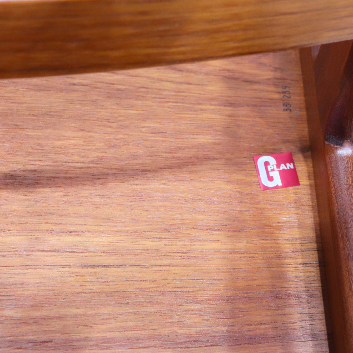 緩やかなカーブを描く天板と安定感のある脚部、そしてチーク材の温もりある木目が、空間に上質な雰囲気を演出します。シンプルかつ機能的なデザインはまさにミッドセンチュリーのマストアイテム。G-PLANらしい洗練された佇まいをぜひお楽しみください。
