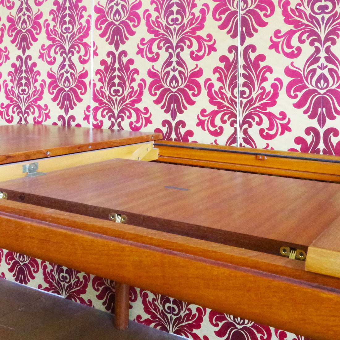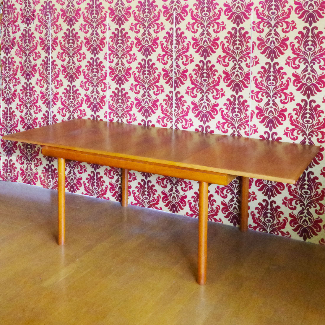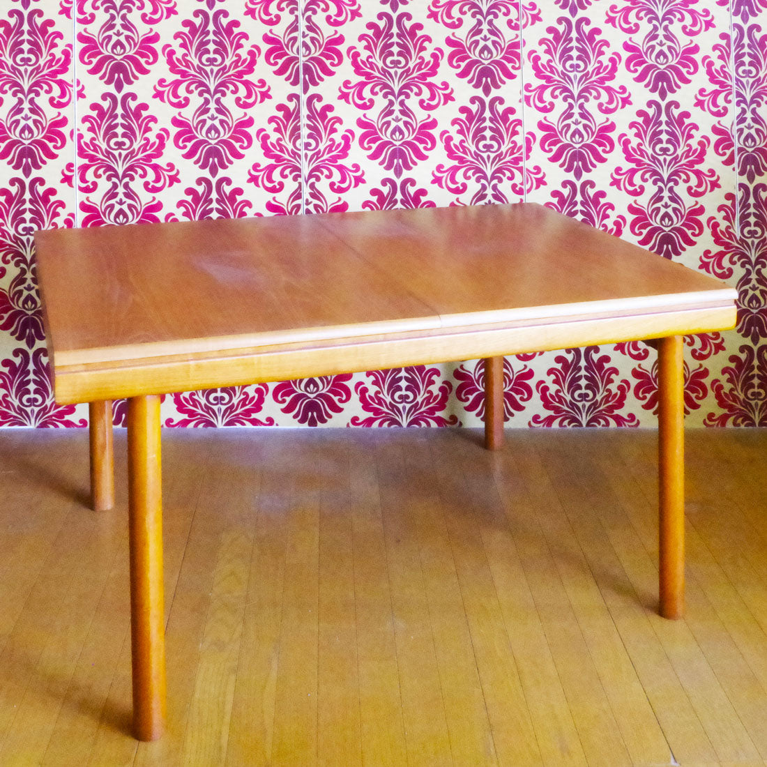 イギリスのミッドセンチュリーデザインを象徴するブランド、White & Newton(ホワイト&ニュートン)によるヴィンテージのエクステンションダイニングテーブル。シンプルかつ洗練された佇まいは、1960〜70年代の英国モダンデザインを色濃く反映しています。