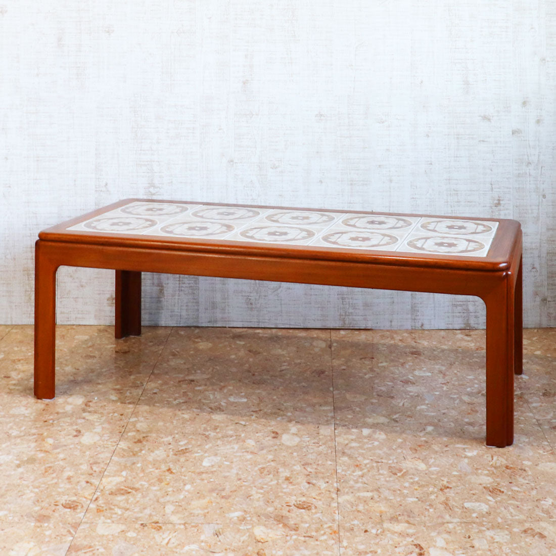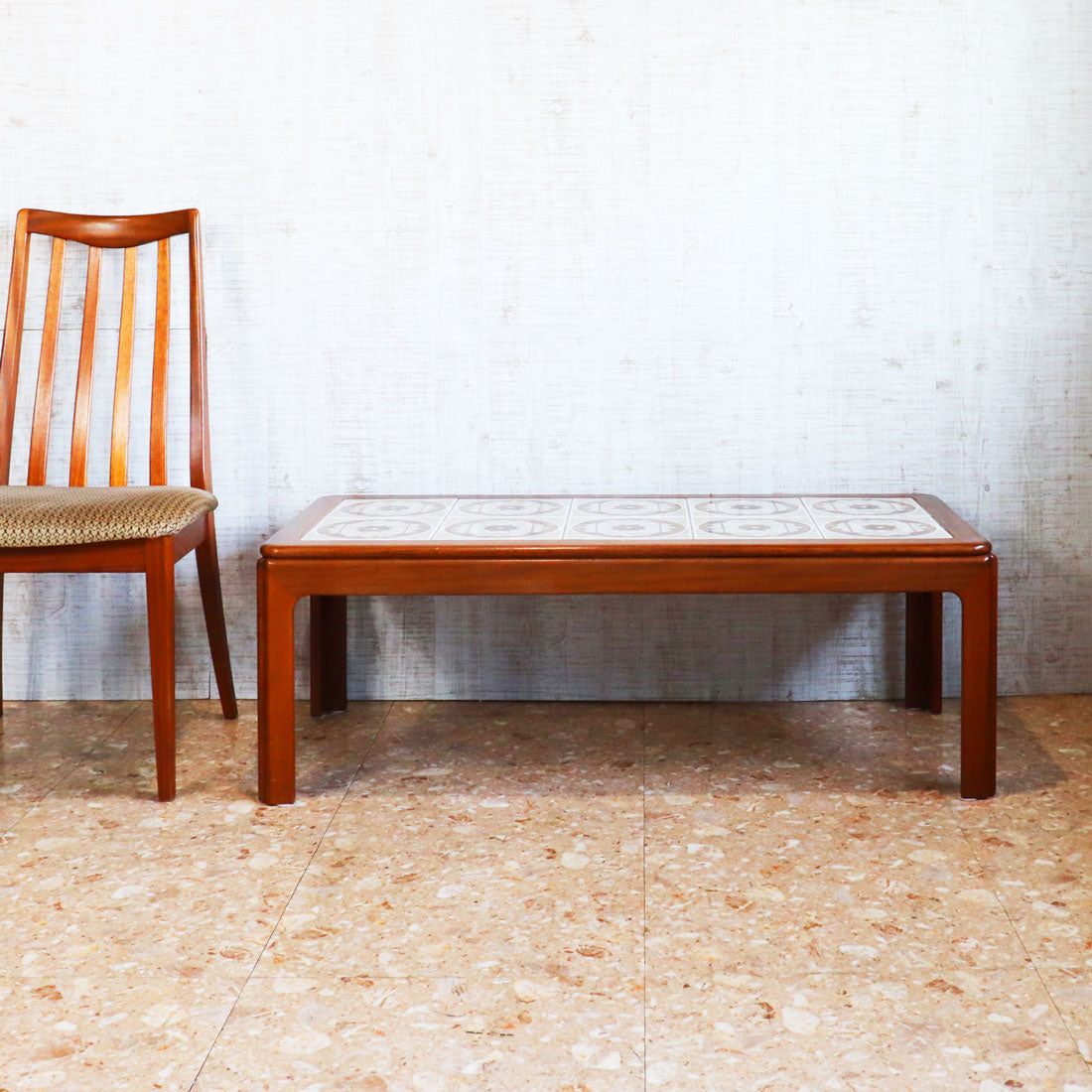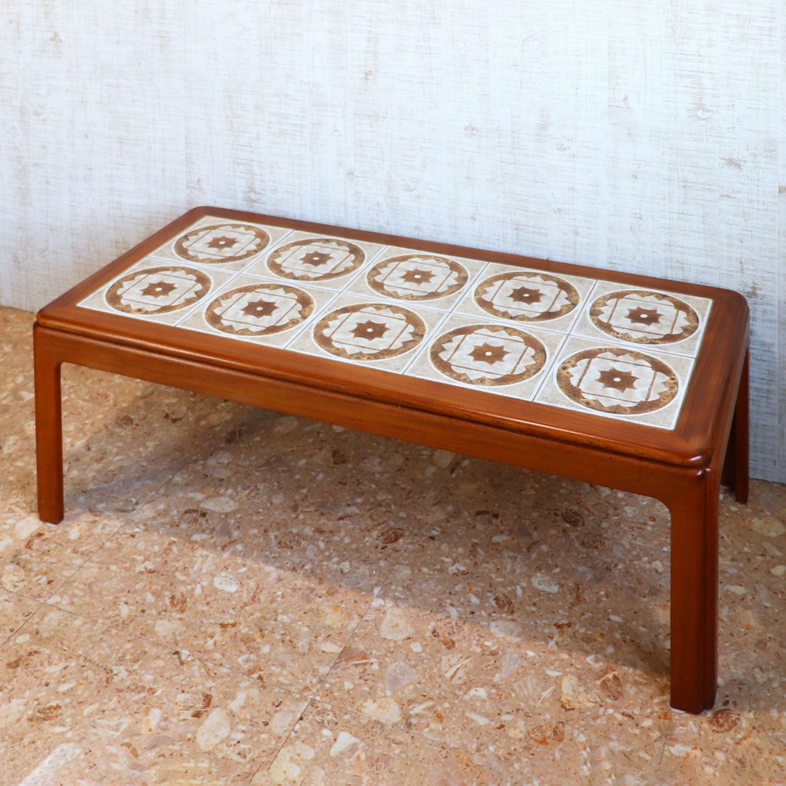 イギリスの老舗家具ブランド G-PLAN(ジープラン)による、1970年代頃のヴィンテージ・タイルトップコーヒーテーブルです。丸みを帯びたチーク材のフレームと、幾何学模様が施されたセラミックタイルの天板が美しく調和し、空間にレトロかつ洗練された印象を与えてくれます。