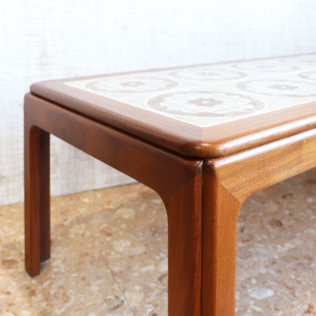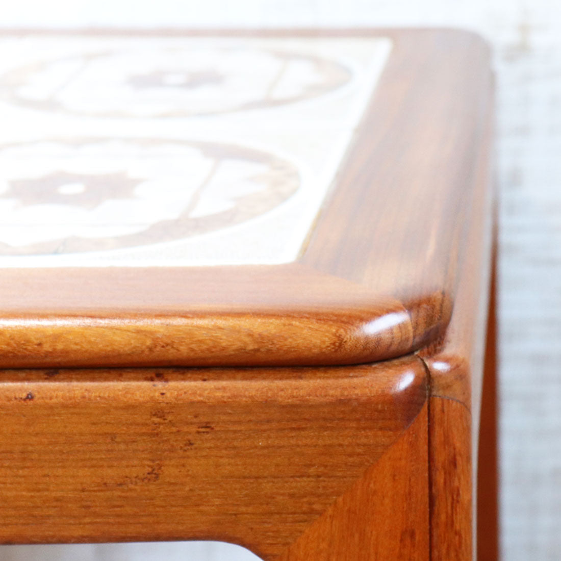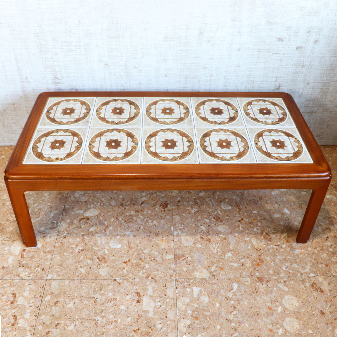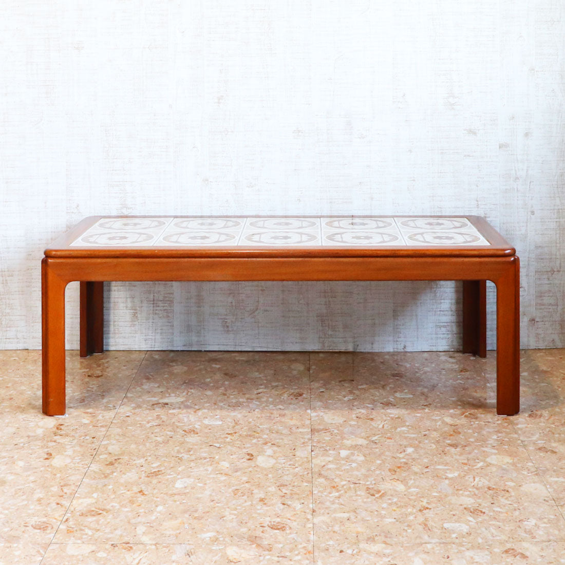 イギリスの老舗家具ブランド G-PLAN(ジープラン)による、1970年代頃のヴィンテージ・タイルトップコーヒーテーブルです。丸みを帯びたチーク材のフレームと、幾何学模様が施されたセラミックタイルの天板が美しく調和し、空間にレトロかつ洗練された印象を与えてくれます。