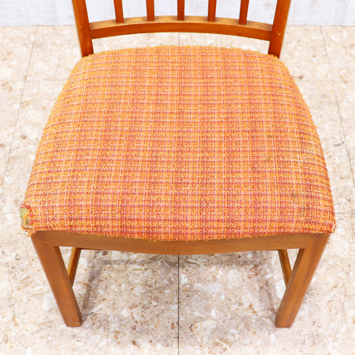 実用面においても、背もたれの緩やかなカーブが背中に優しく寄り添い、長時間の食事やティータイムも快適に過ごせるよう設計されています。経年変化によって飴色に育った木の質感と、温かみのあるオリジナルファブリックのコントラストは、ヴィンテージ家具ならではの醍醐味です。時代を超えて愛されるマッキントッシュの機能美を、ぜひ日常の暮らしに取り入れてみてください。
