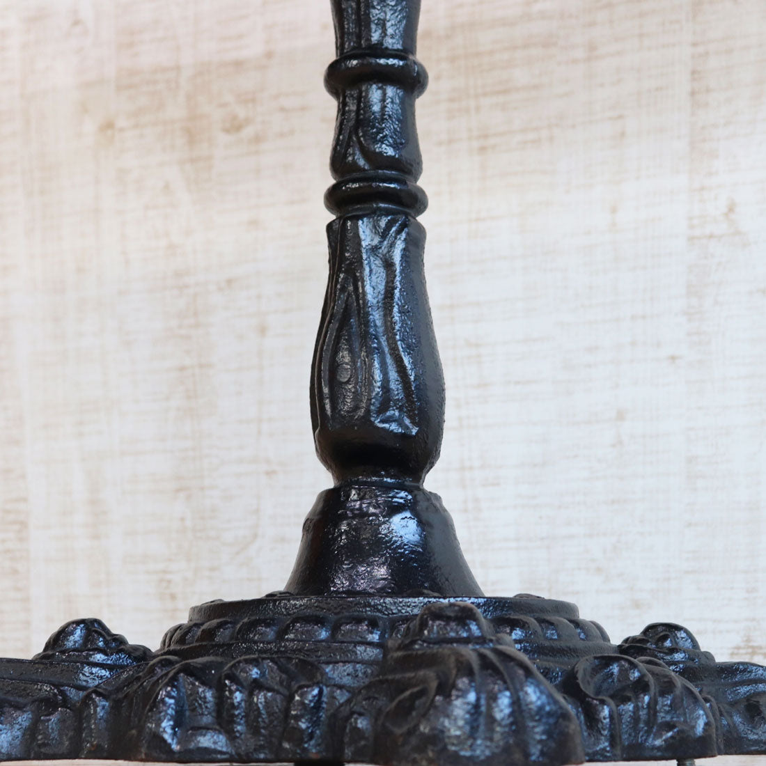 重厚感と品格を兼ね備えた英国アンティークのパブテーブル。クラシックな雰囲気漂う天板は木目の美しさと温かみのある風合いが魅力。天板を支える一本脚のベースは、繊細な装飾が施された鋳鉄製で、1920年代アンティークならではの重厚な存在感を放ちます。