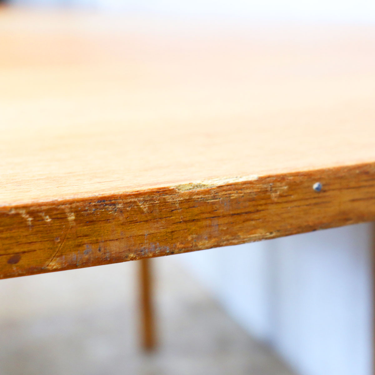 ヴィンテージ家具だからといって、特別なお手入れは必要ありません。日本は湿気が多いため、オイルを頻繁に塗る必要はなく、日常的なお手入れは乾拭きで十分です。