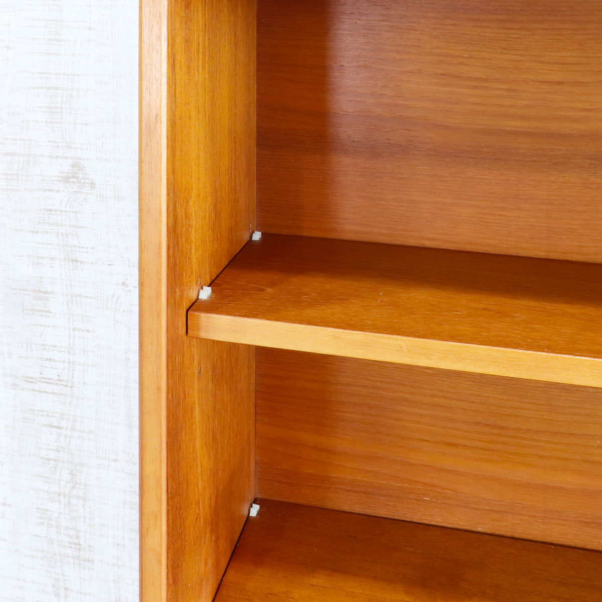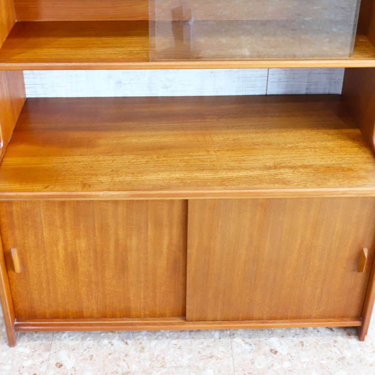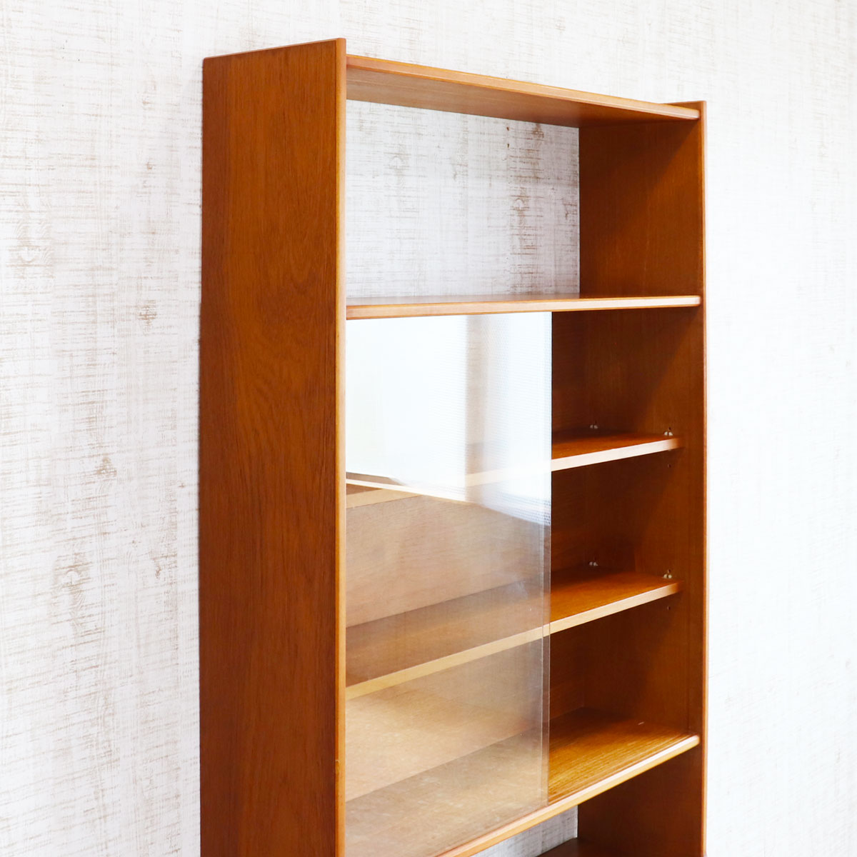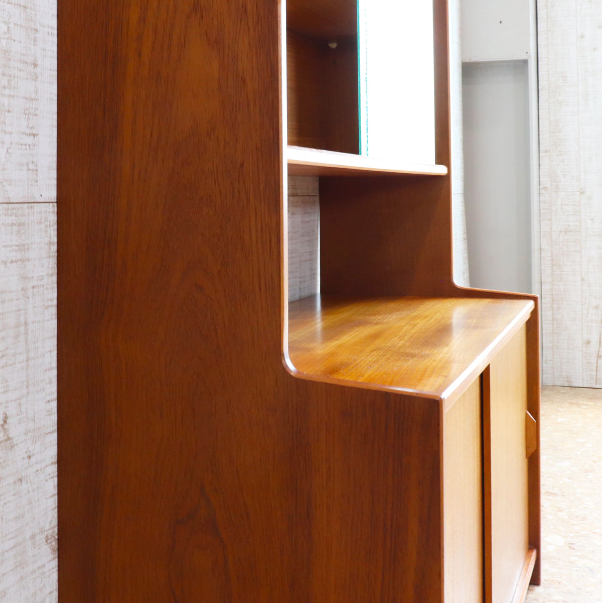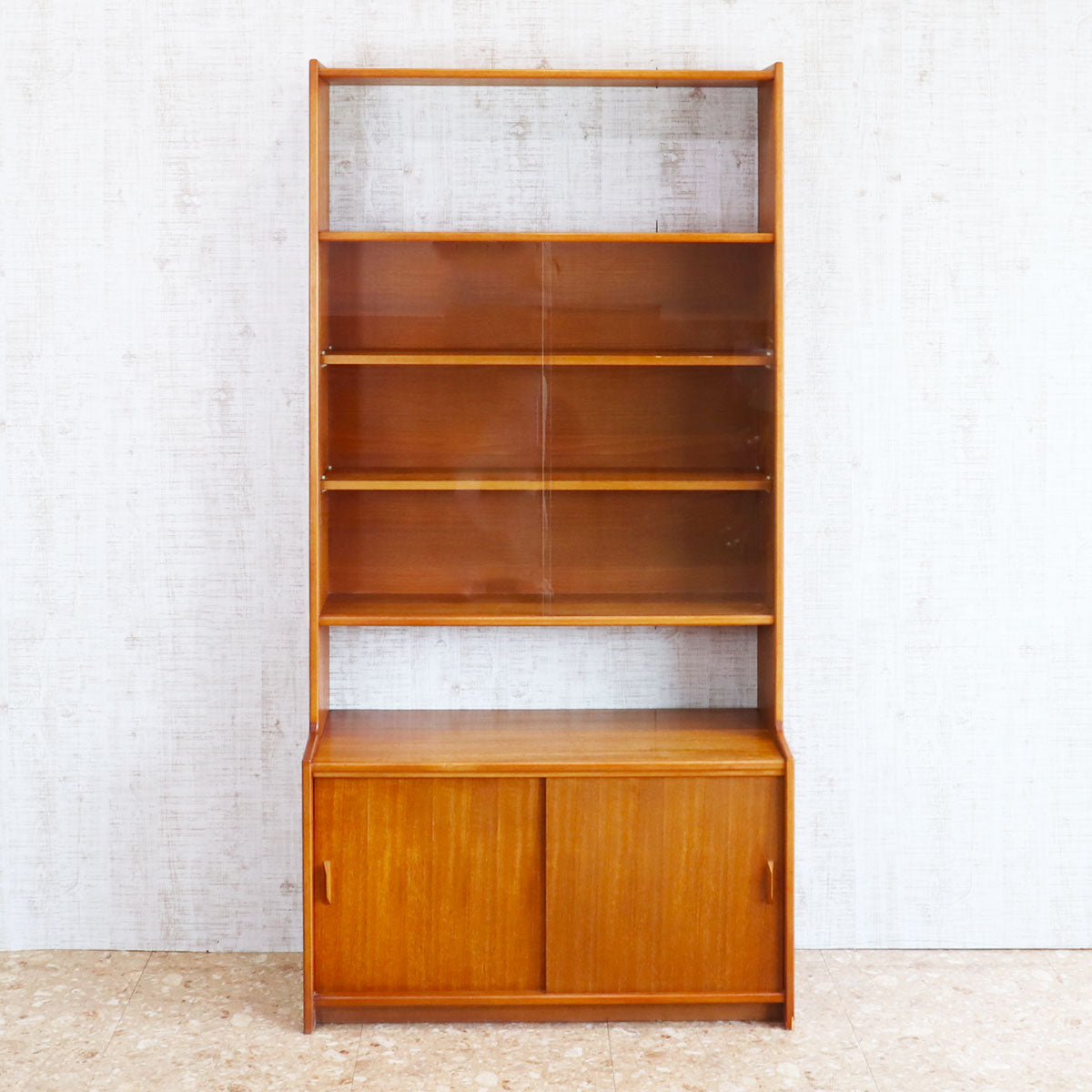英国Herbert E. Gibbsによるヴィンテージ・ガラスキャビネット。1950〜60年代頃のミッドセンチュリーデザインを象徴する一台です。チーク材の美しい木目と、直線を基調とした端正なフォルムが魅力で、空間に上品な落ち着きをもたらします。