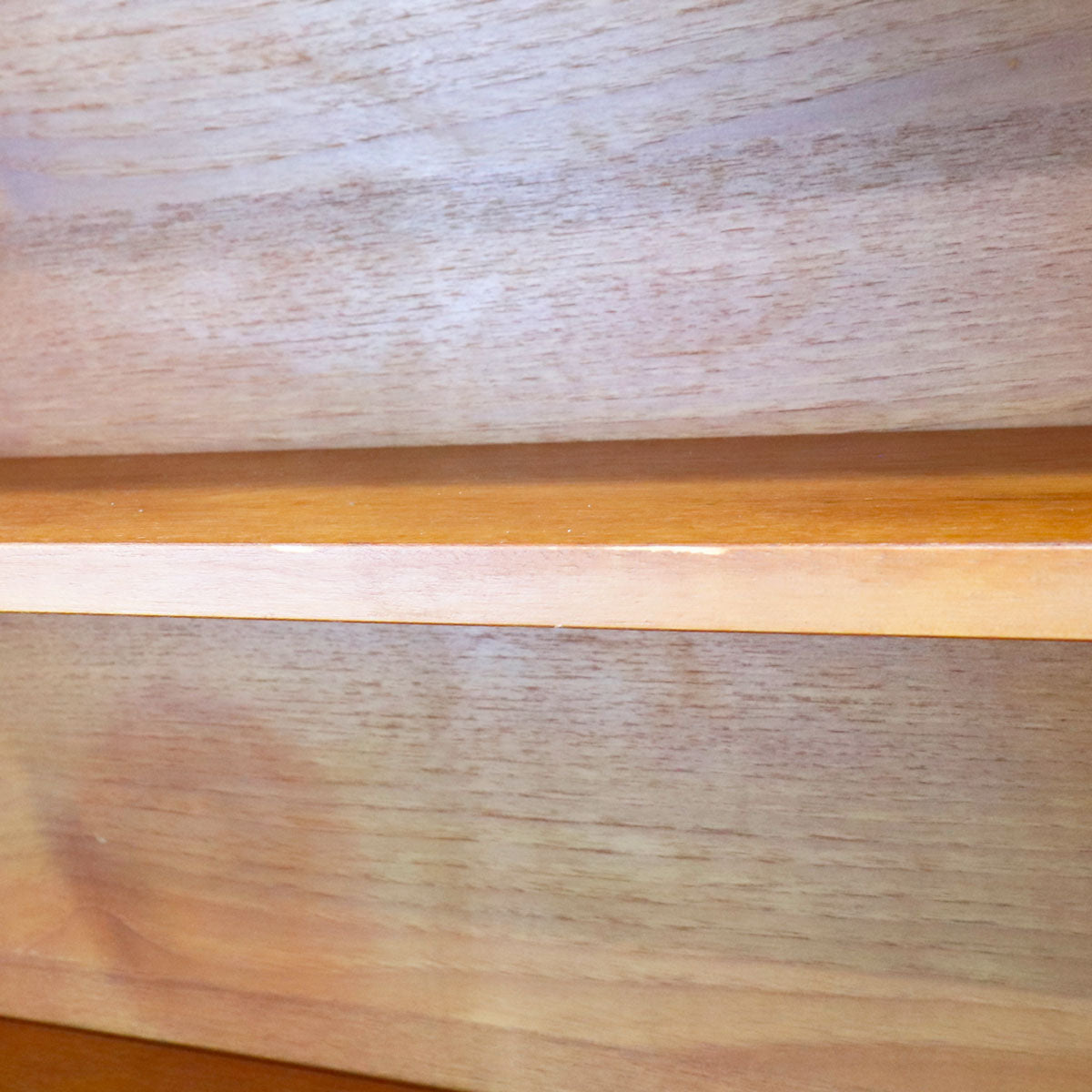 ヴィンテージ家具だからといって、特別なお手入れは必要ありません。日本は湿気が多いため、オイルを頻繁に塗る必要はなく、日常的なお手入れは乾拭きで十分です。