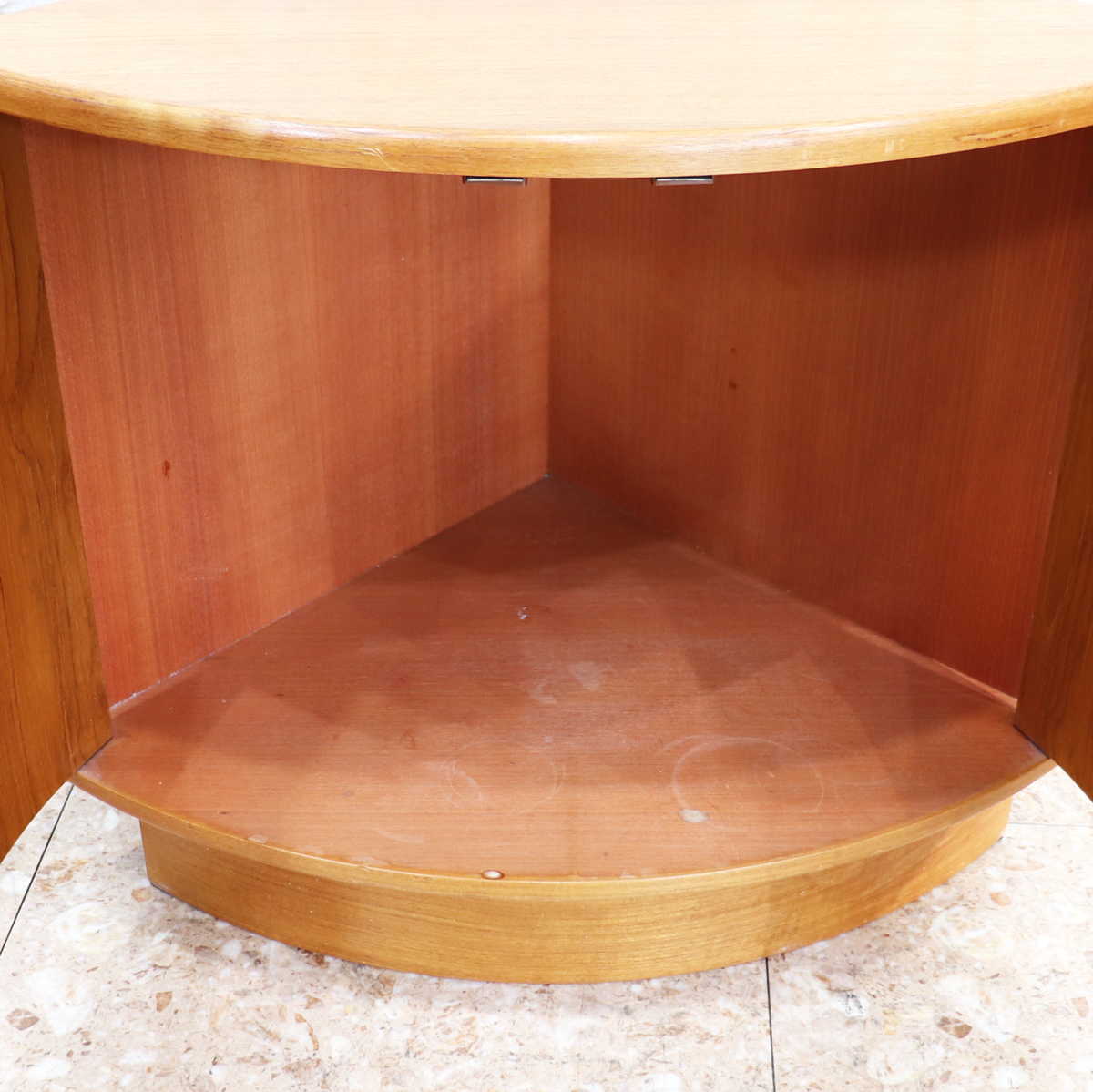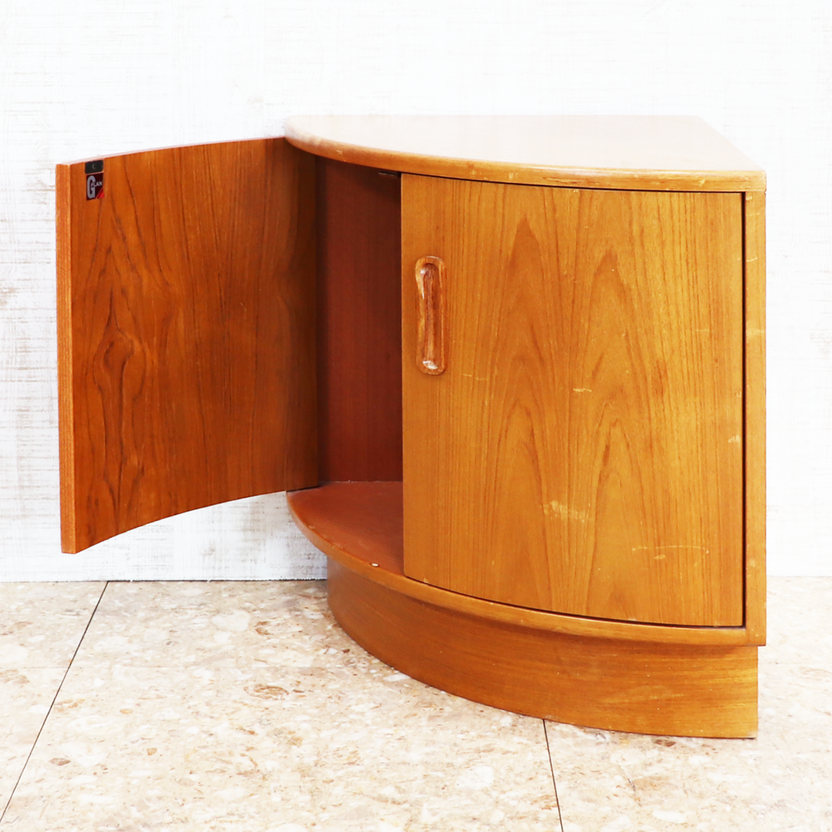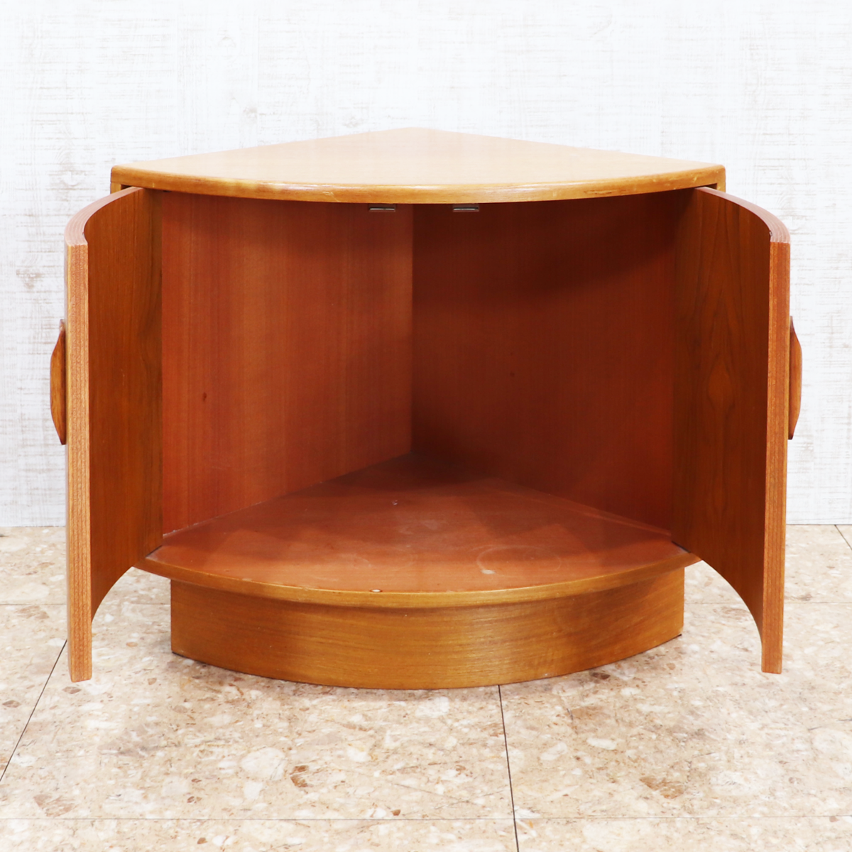 デッドスペースになりがちなコーナーを美しく、そして実用的に活かせる設計は、当時のG-PLANならではの高いデザイン性と機能性を感じさせます。