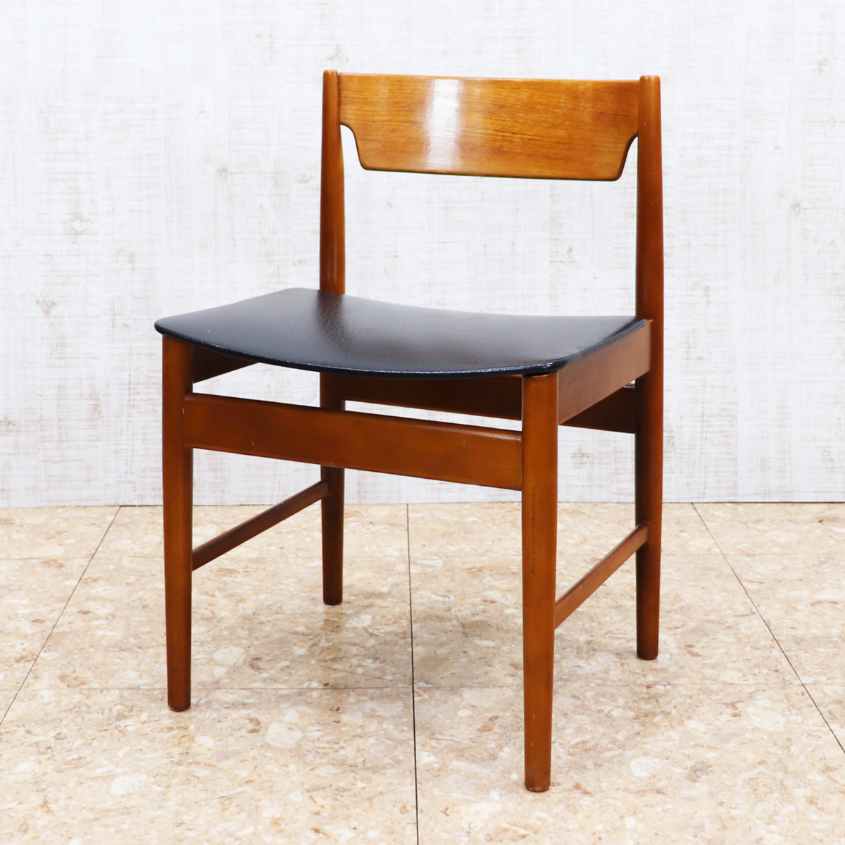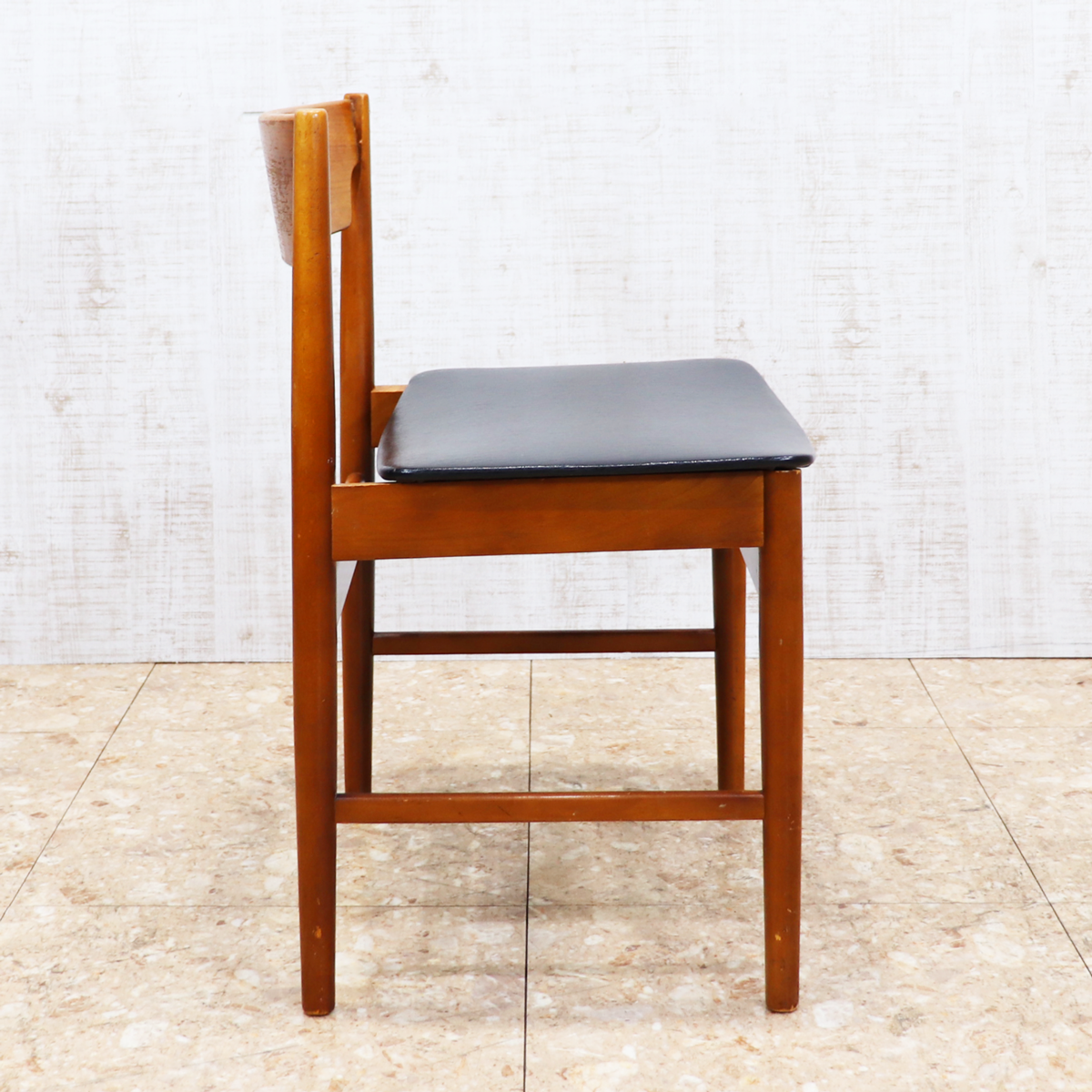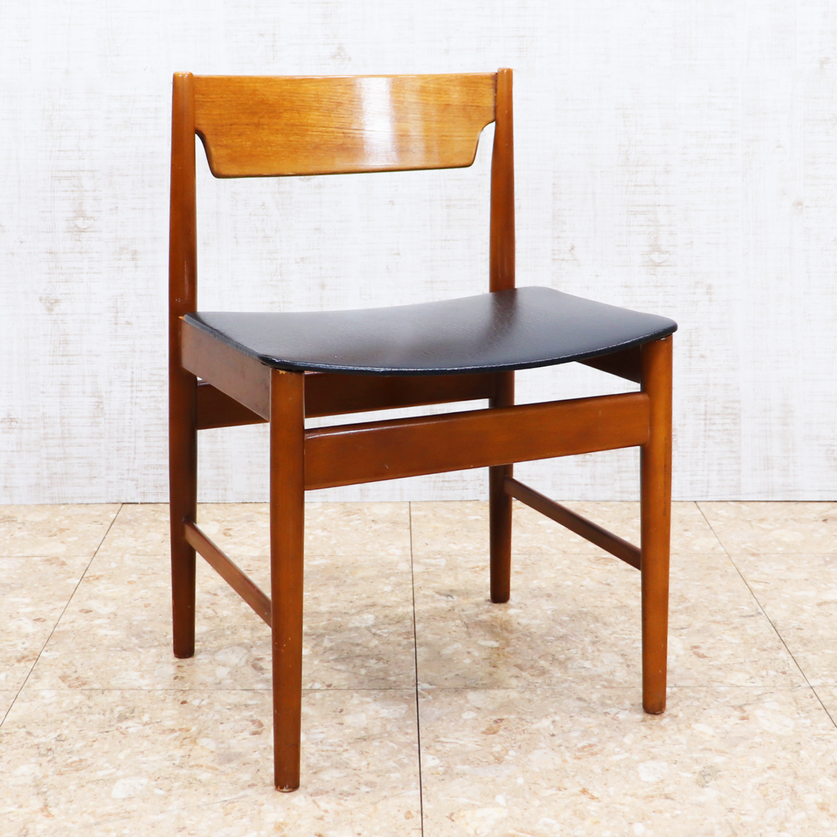 無駄を削ぎ落とした直線的なフォルムは、1960〜70年代頃のイギリスらしいミッドセンチュリーデザインを感じさせ、空間にさりげない上質さをもたらします。すっきりとした背もたれのラインと、緩やかにカーブした座面は見た目の美しさだけでなく、身体に自然とフィットする心地よさも兼ね備えています。