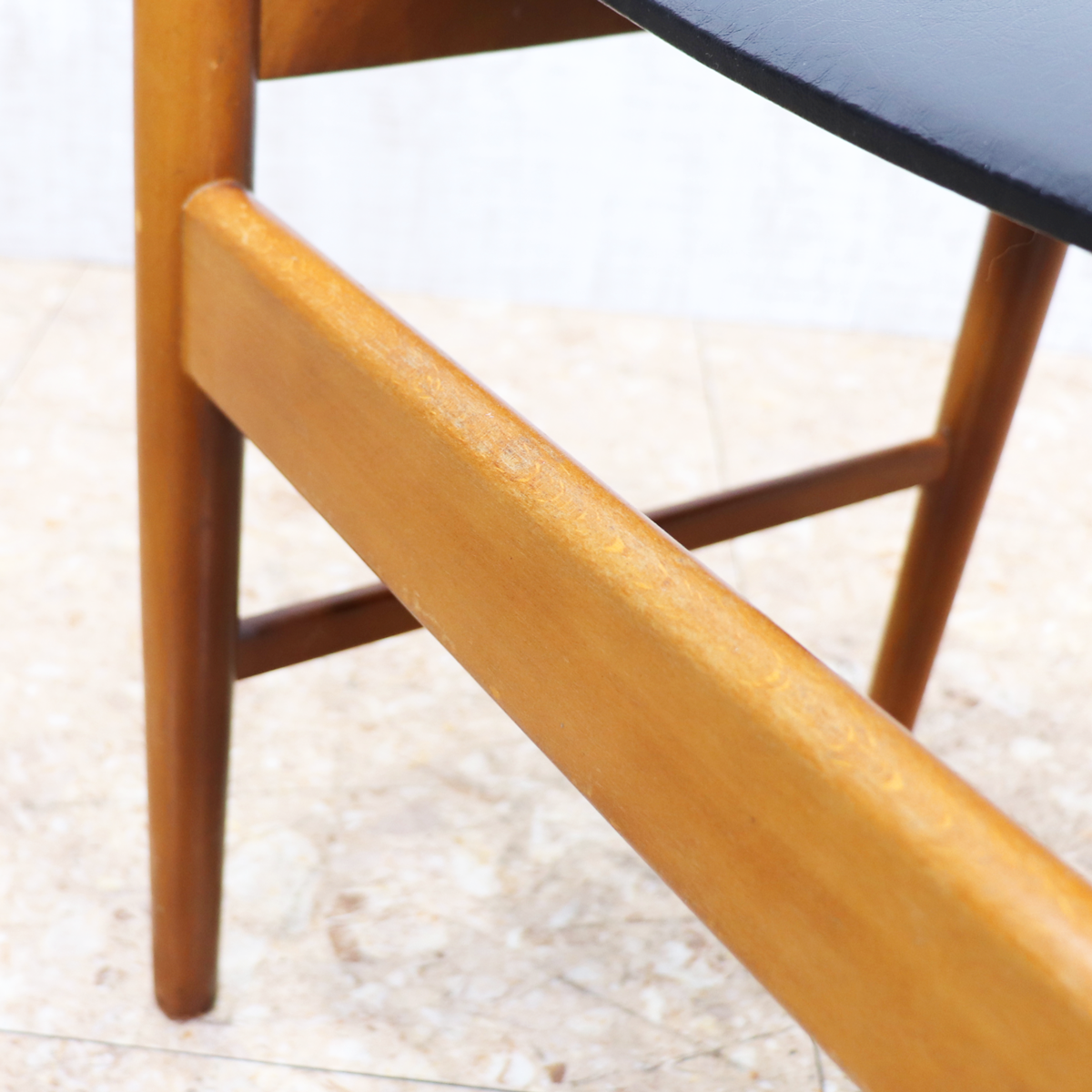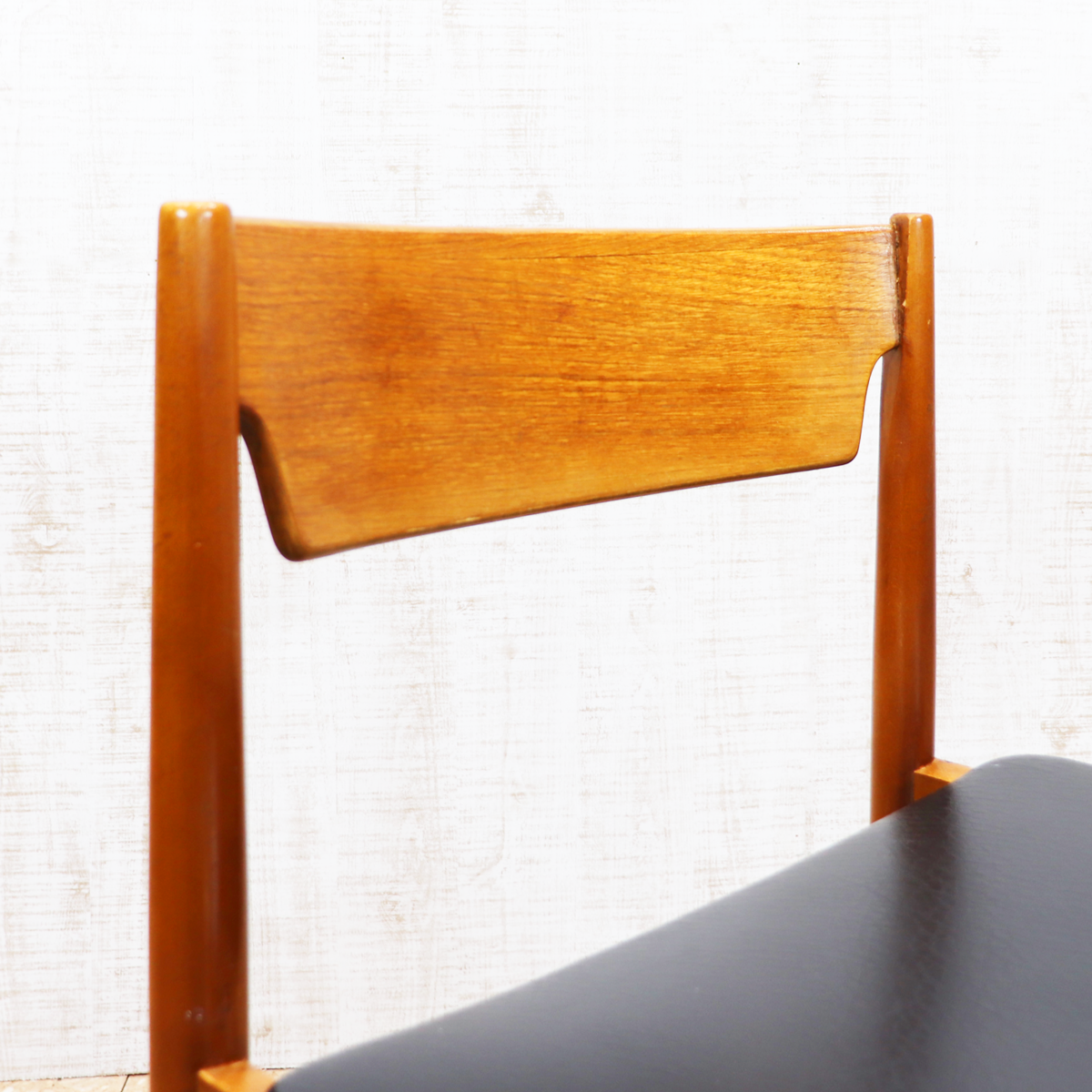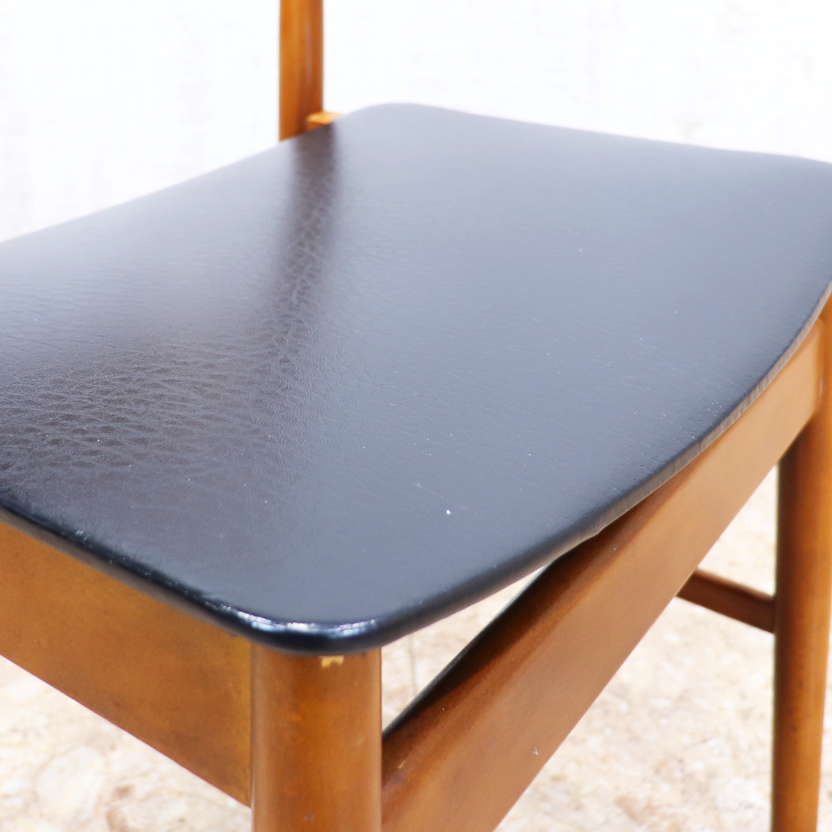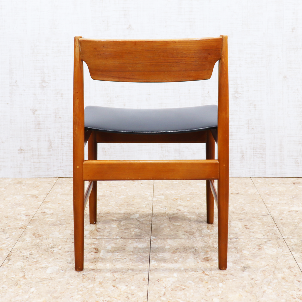 無駄を削ぎ落とした直線的なフォルムは、1960〜70年代頃のイギリスらしいミッドセンチュリーデザインを感じさせ、空間にさりげない上質さをもたらします。すっきりとした背もたれのラインと、緩やかにカーブした座面は見た目の美しさだけでなく、身体に自然とフィットする心地よさも兼ね備えています。